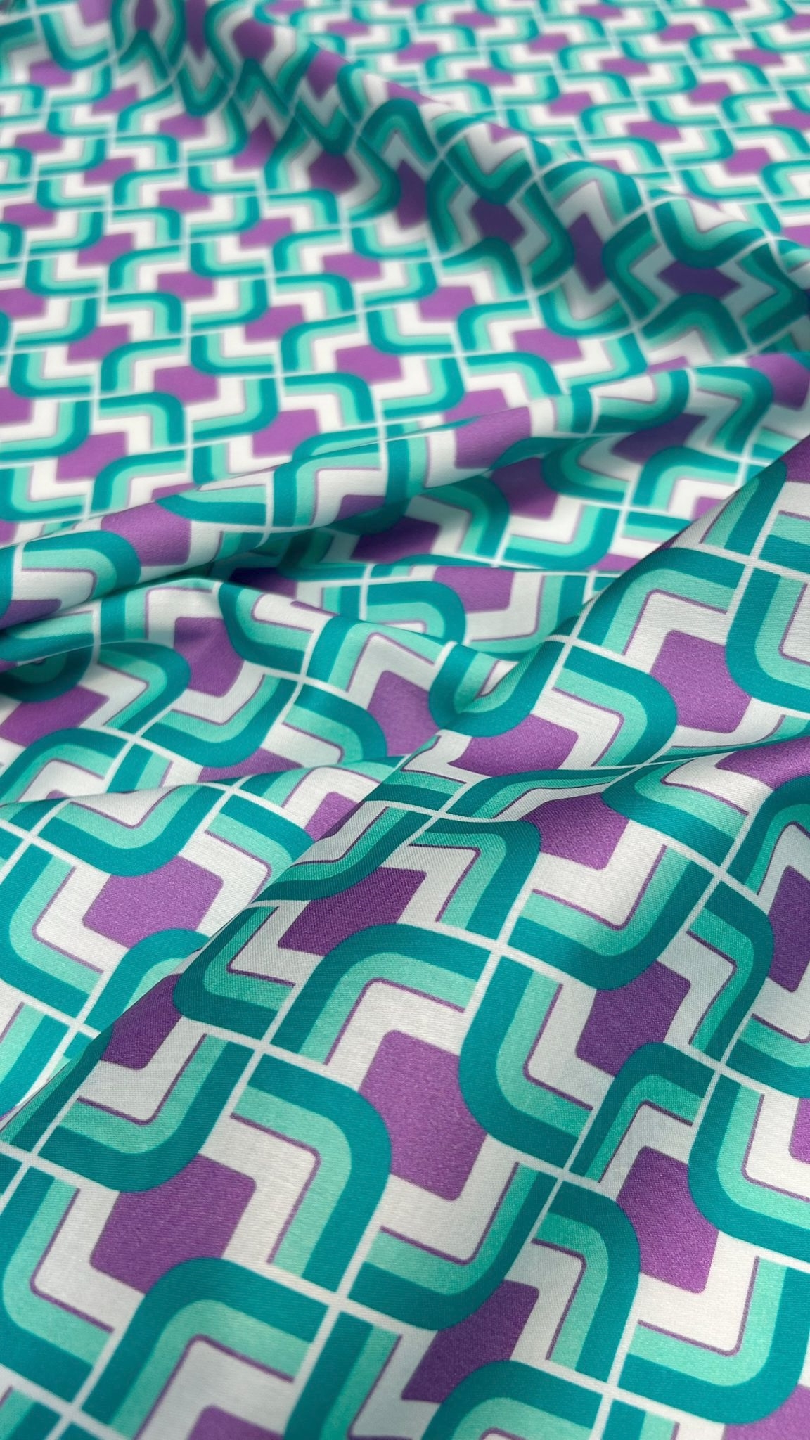 Deadstock bomuld med lilla/turkis retro printDeadstock bomuld med lilla/turkis retro printDeadstock bomuld med lilla/turkis retro print
