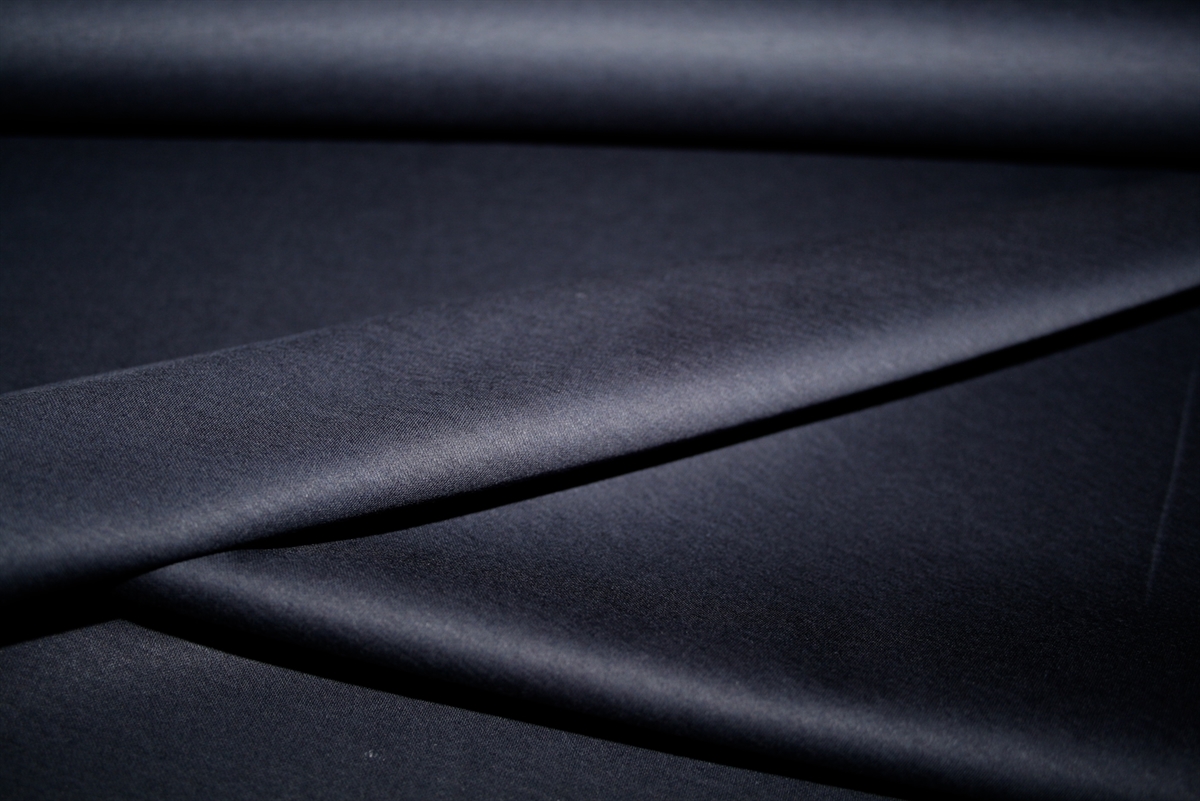 Navy bomuldsjersey i en let, glansfuld og blød kvalitet. Her får du en forholdsvis fast strækbar jersey, der ikke er tilsat elastan.