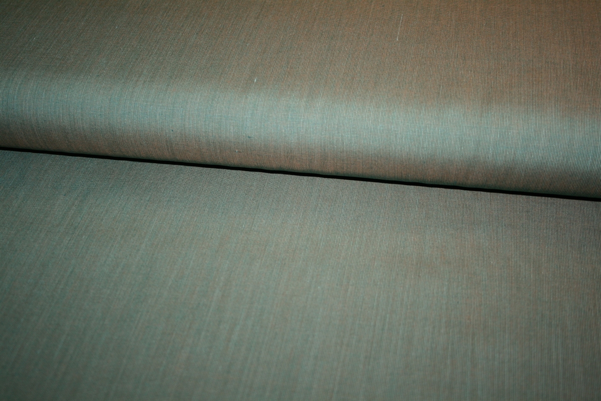 Fastvævet skjortebomuld der changerer meget smukt mellem grøn og orange. Kvaliteten er let. Stoffet er produceret for et stort modehus i Italien.