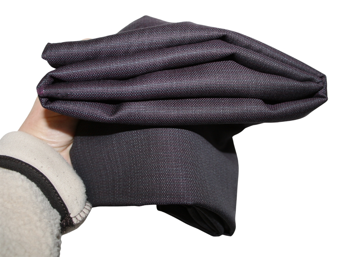 Let og lækker uld i en aubergine/sort/grå vævning. Brug fx stoffet til en nederdel.