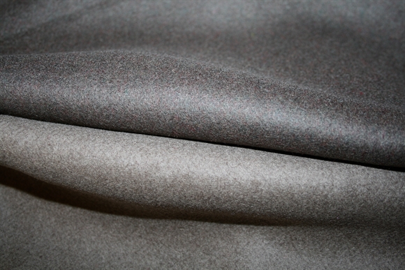 Vendbar uldblanding i en kraftig og fast frakkekvalitet. Ulden er taupe på den ene side og gråbrun på den anden.