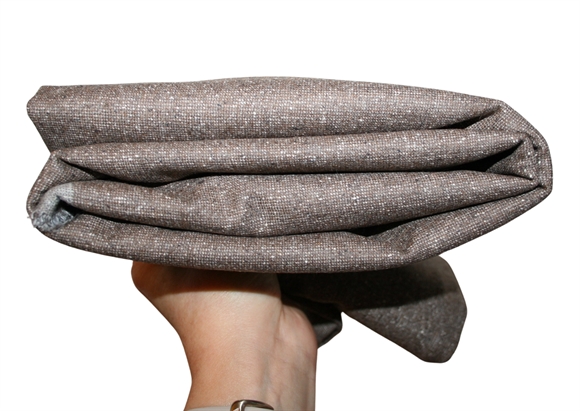 Lækker uld i en brun meleret vævning. Kvaliteten er let-medium kraftig og kan fx bruges til nederdel.