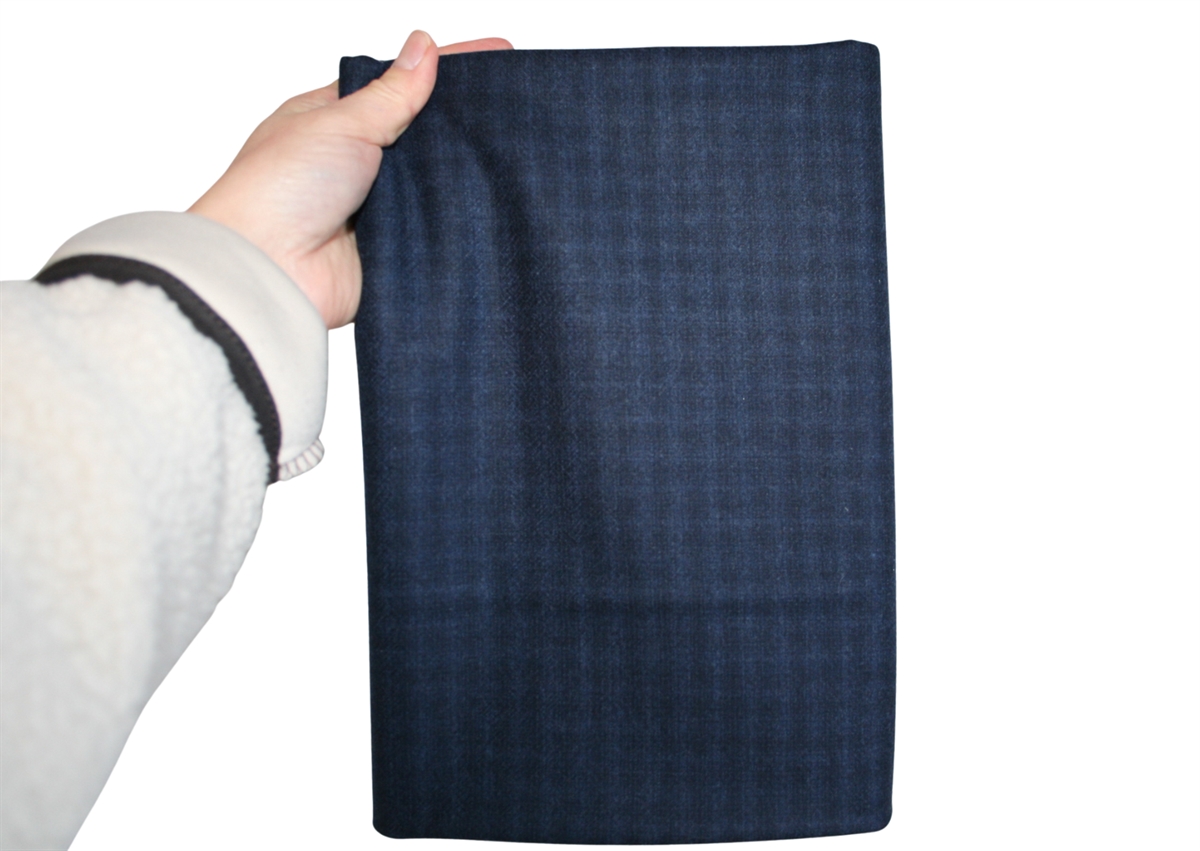 Lækker let-medium kraftig uld med et subtilt blå/sort ternmønster. Brug fx stoffet til en nederdel.