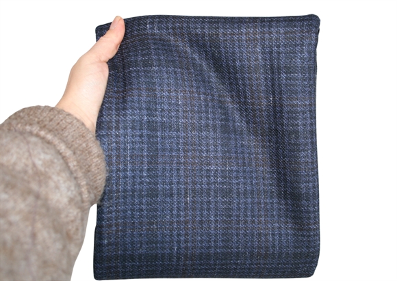 Blå/sort/brun/hvid ternet uld i en medium kraftig og lækker vævning. Brug fx stoffet til en nederdel.
