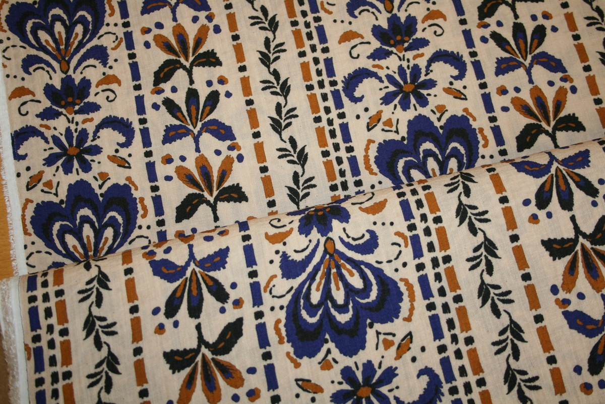 Viskose crepe med middelhavsinspireret print i blå og okkerViskose crepe med middelhavsinspireret print i blå og okkerViskose crepe med middelhavsinspireret print i blå og okker