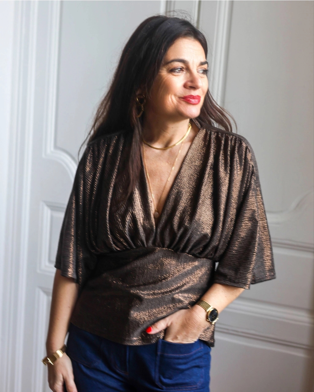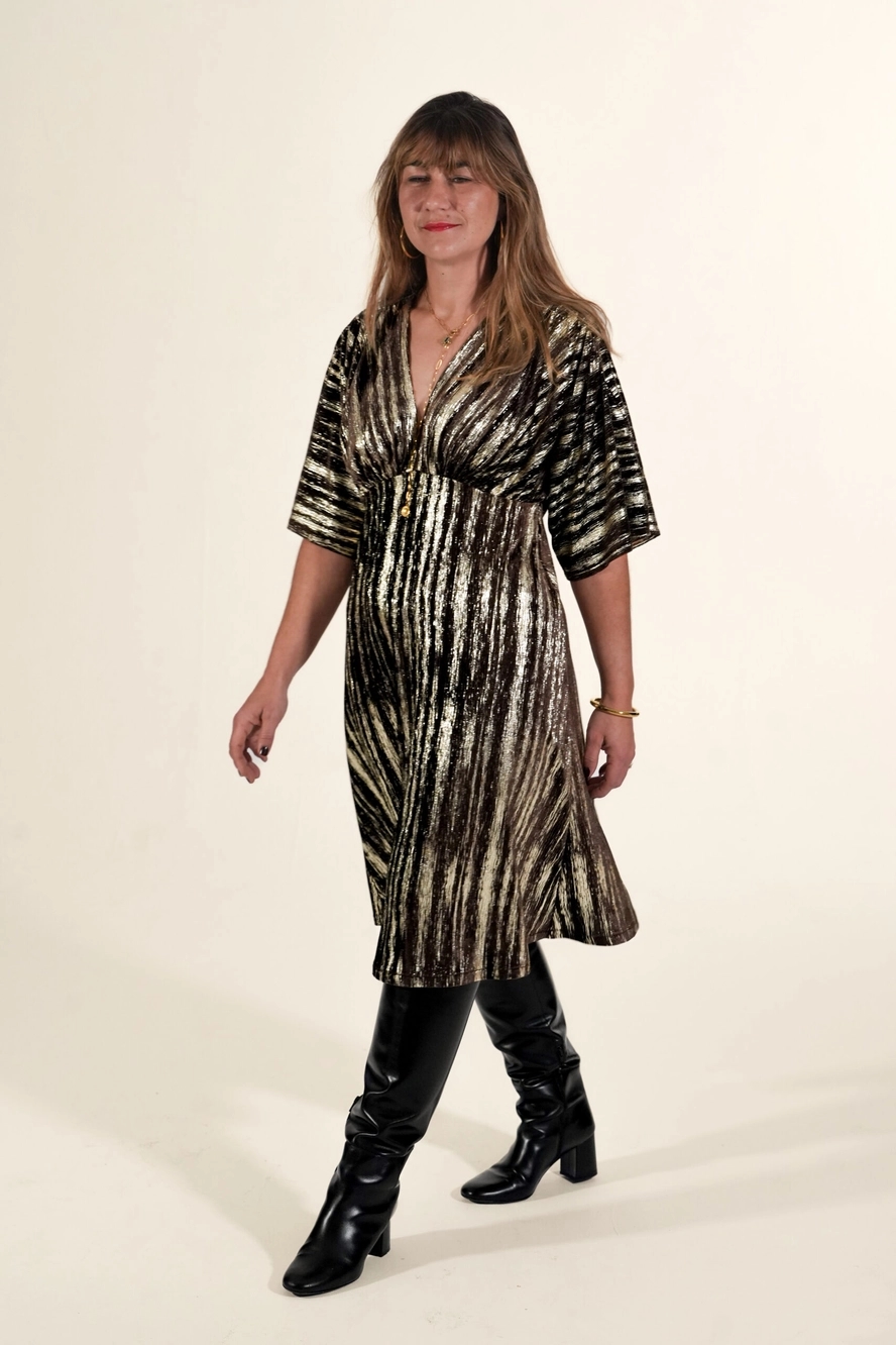 Anabelle er et feminint og alsidigt symønster, der giver dig mulighed for at skabe både en elegant kjole og en smuk bluse – alt efter din stil og dit behov. Modellen er kendetegnet ved sin flotte V-udskæring og de brede, dramatiske skuldre med rynkede detaljer, som giver et luftigt, moderne og meget klædeligt look. Kroppen er enkel og let figursyet, hvilket skaber en fin balance til de iøjnefaldende skuldre. Kjolen findes i to længder, og blusen kan syes i en smal og lidt bredere version.
