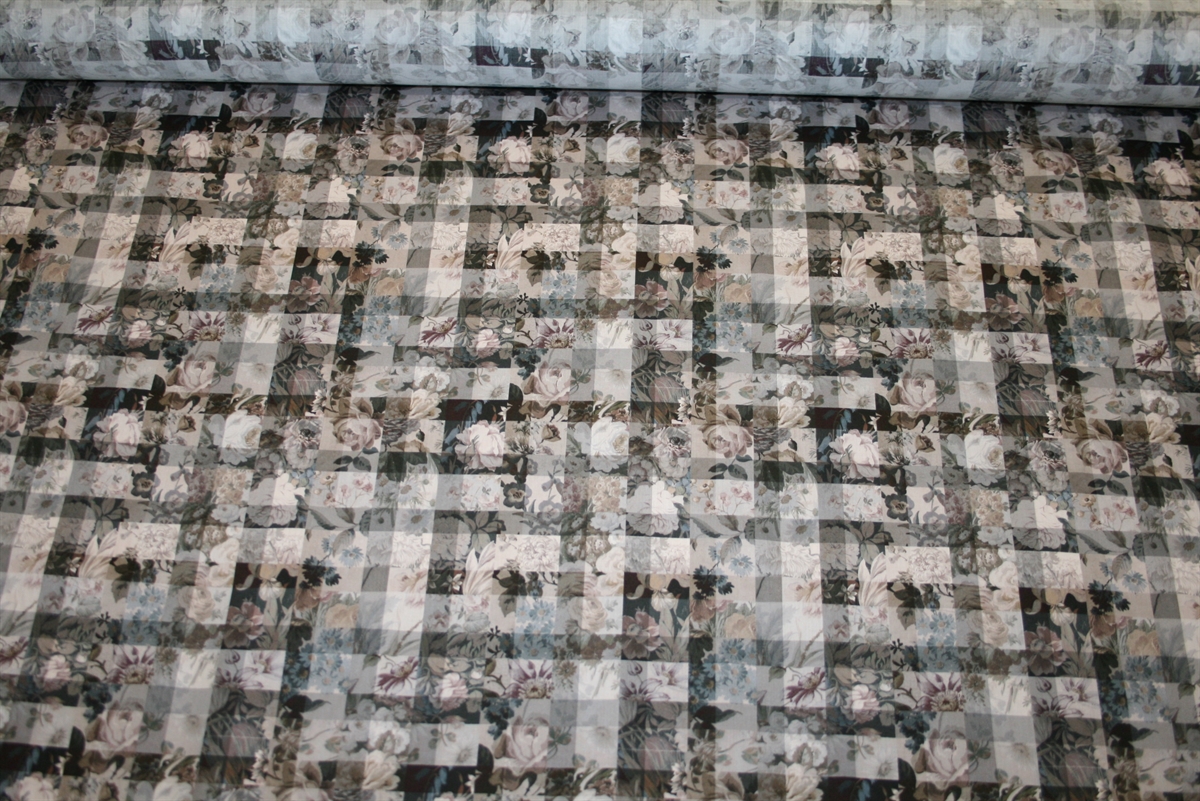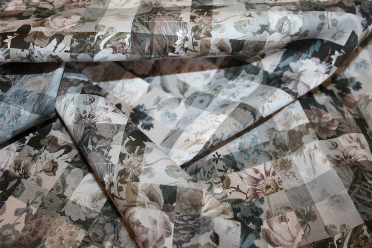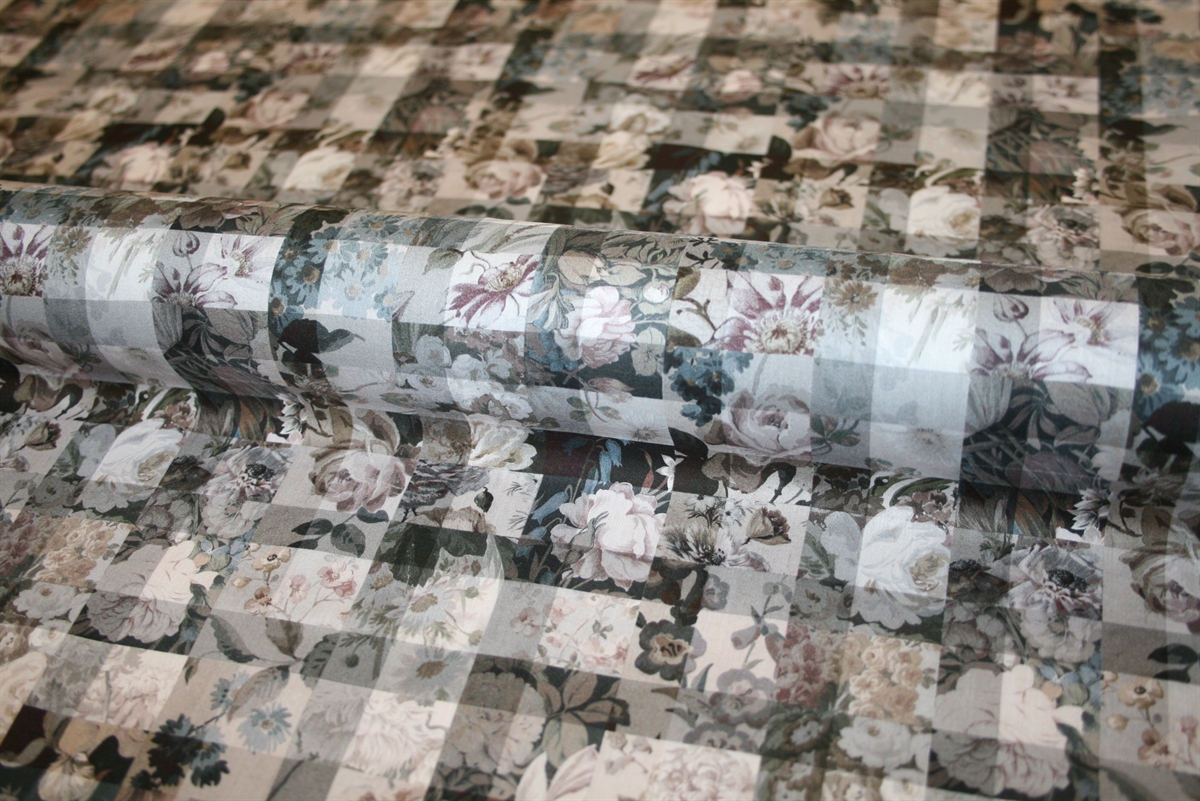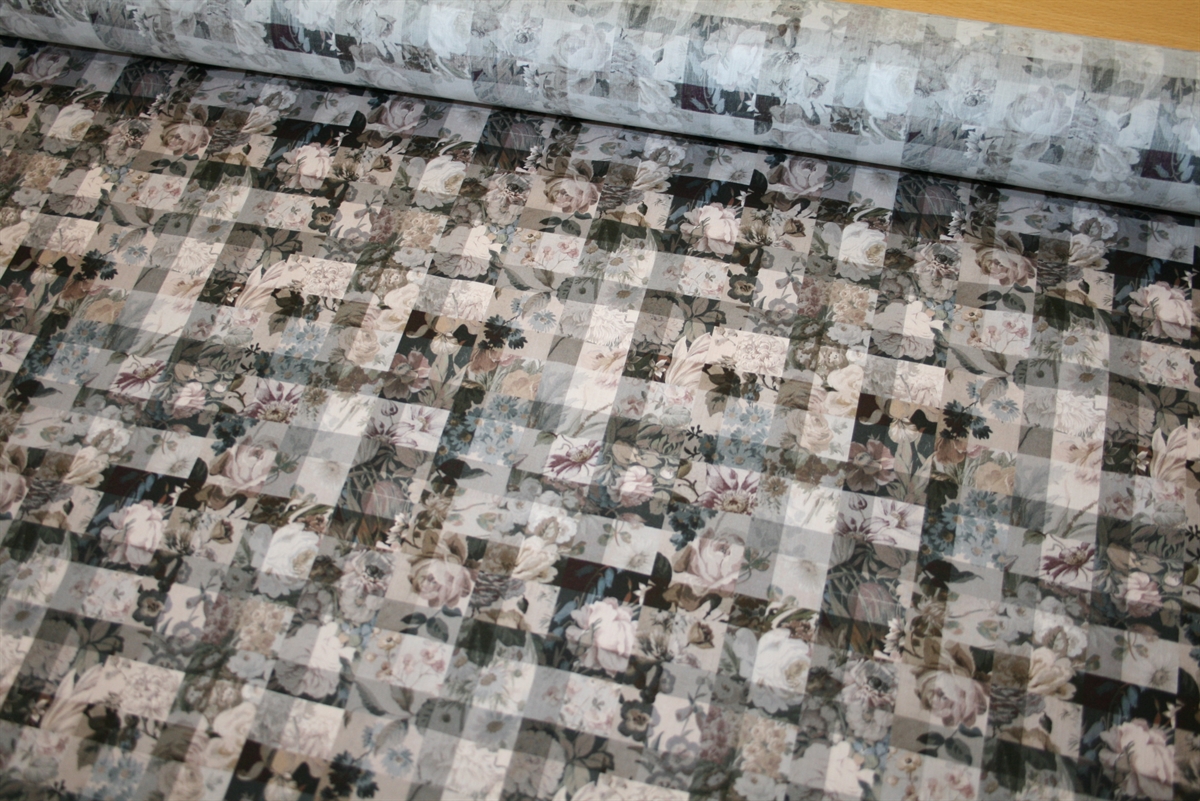Liberty Tana Lawn™ i 100% bomuld med et raffineret mønster bestående af tern og botaniske illustrationer i en afdæmpet farvepallette. Stoffet er oeko-tex certificeret, dvs. uden skadelig kemi.