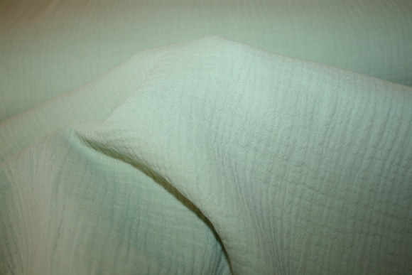 Mintgrøn musselin (dobbelt gauze) i 100% bomuld. Smørblød og meget lækker kvalitet til sommergarderoben.