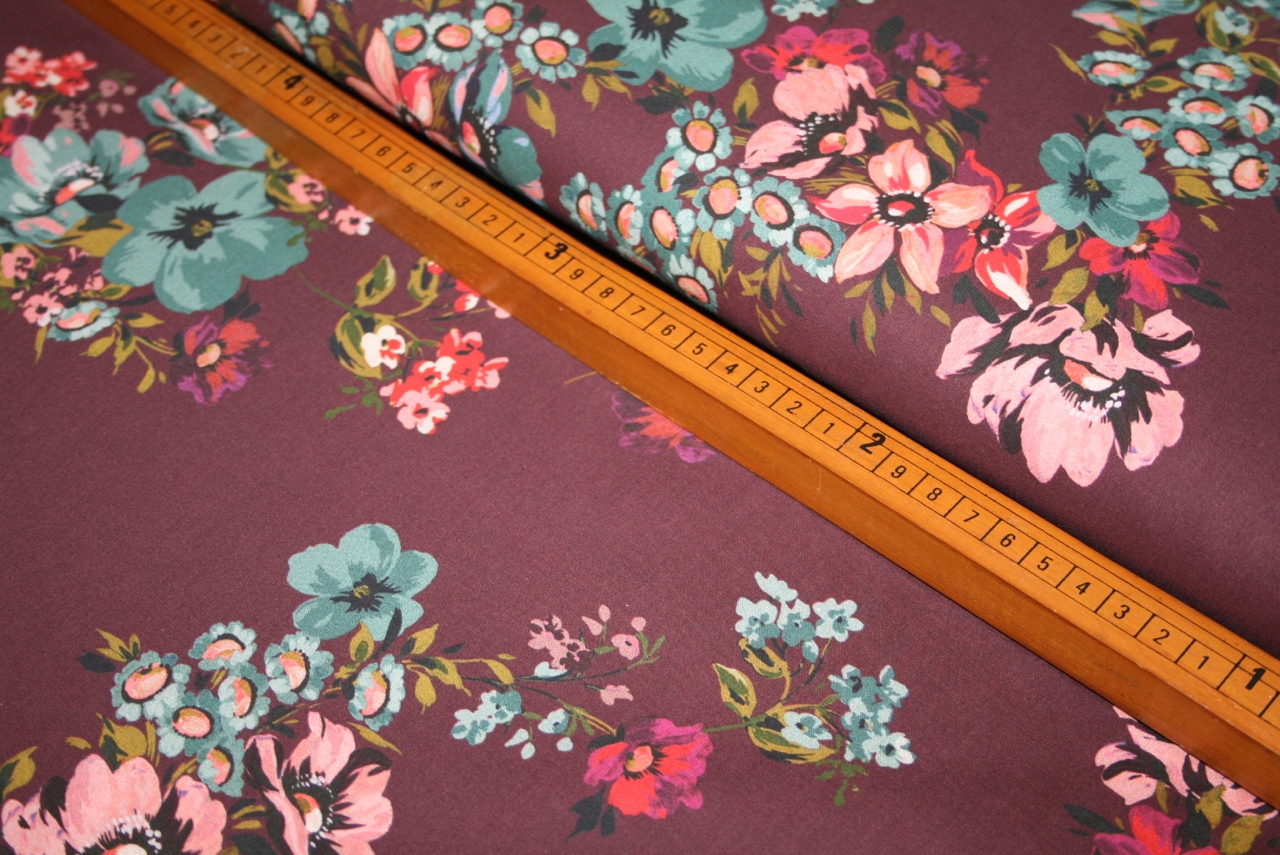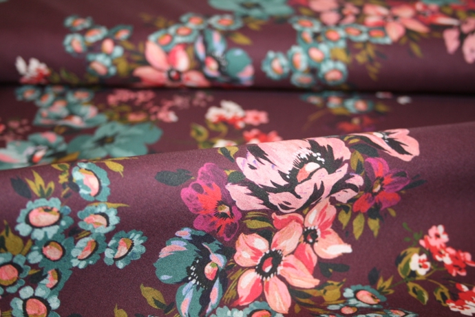 Bomuld med blomster på en bordeaux bund (Lady McElroy).