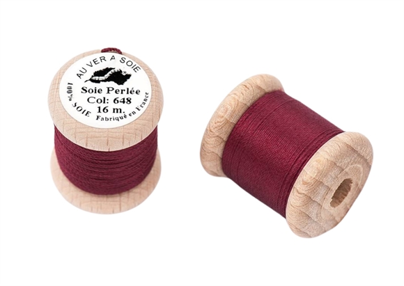 3 trådet knaphulssilke spundet af råsilke af højeste kvalitet på fin cone af træ.