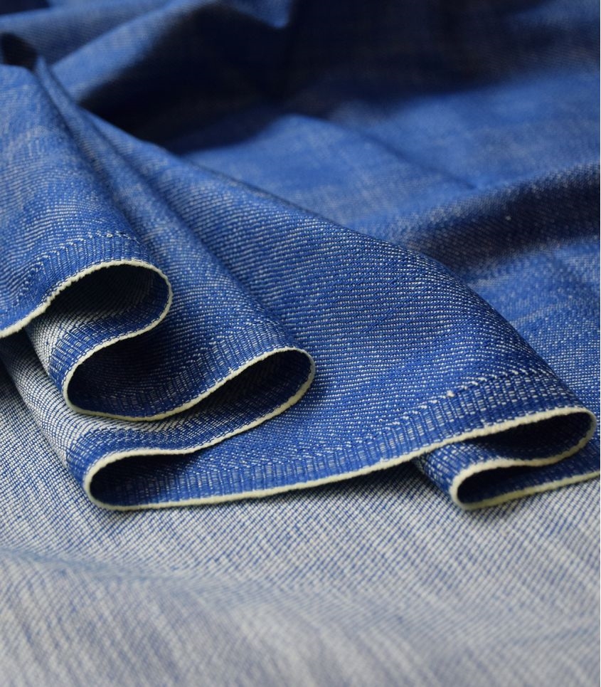 Blød klar blå bomulds denim i en medium kraftig kvalitet.