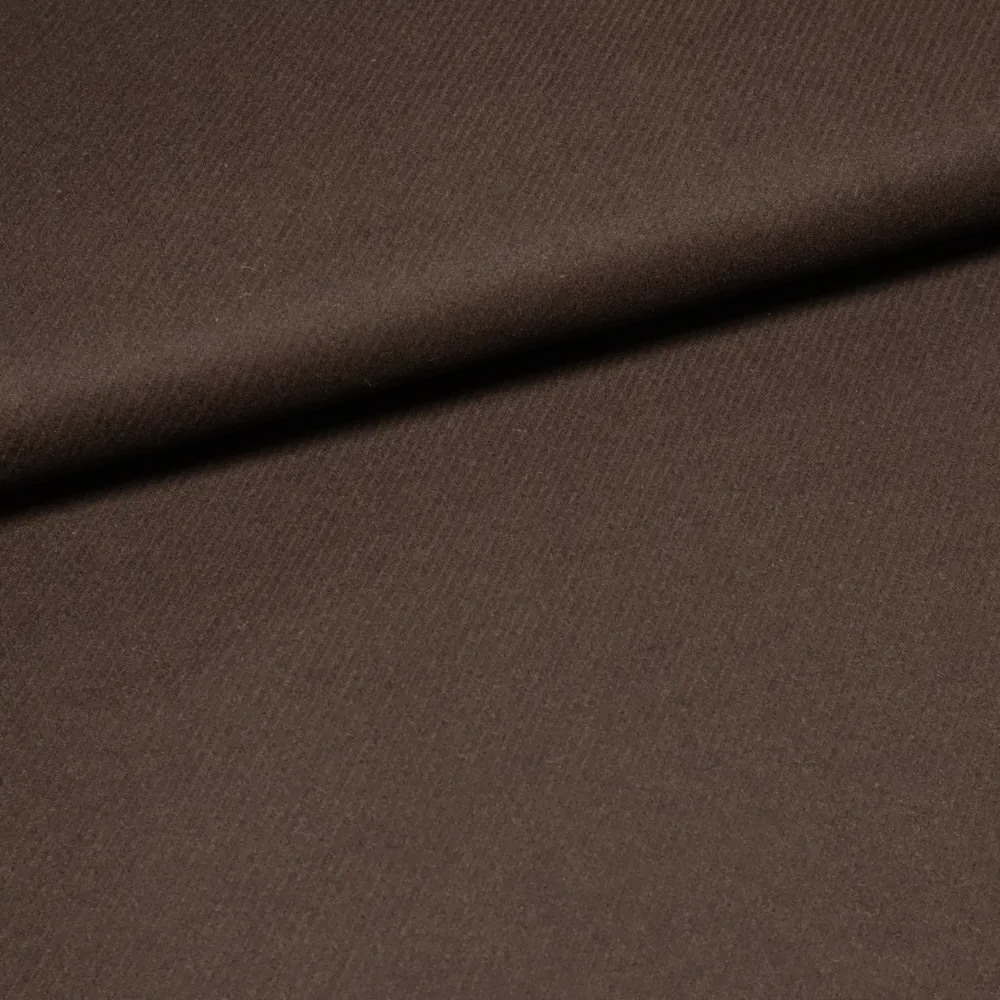 Lækker twillvævet frakkeuld i mørkebrun.