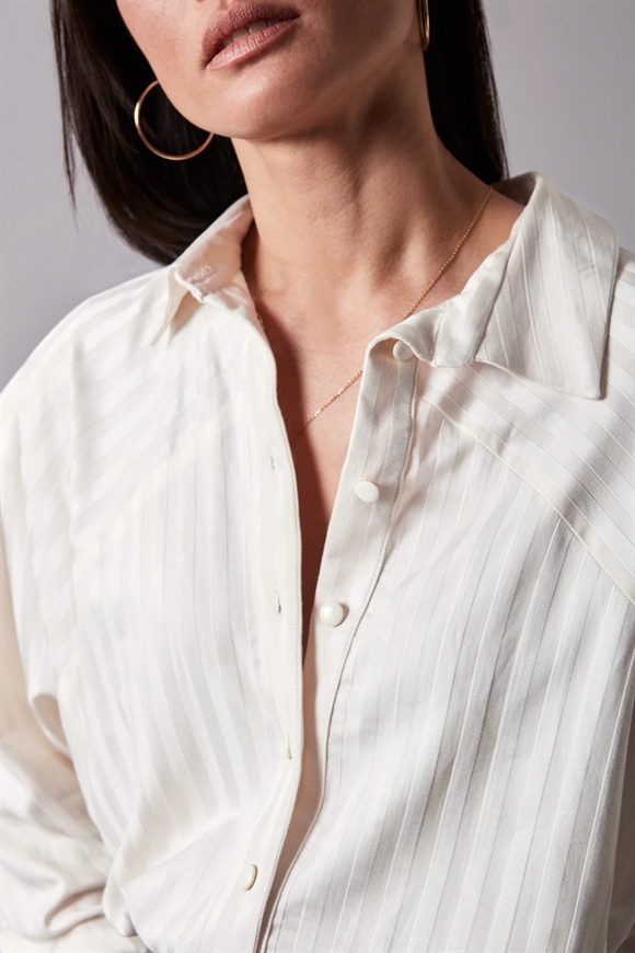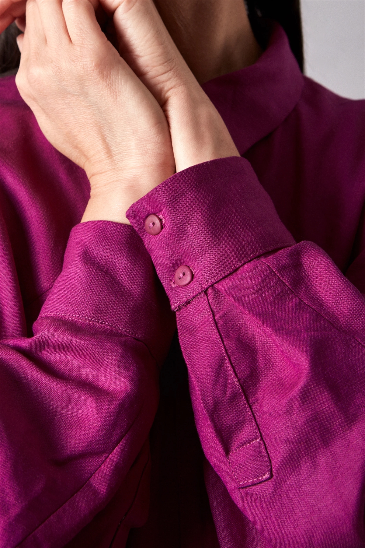 • Version A har en løs pasform for maksimal komfort, skrå frontudskæring & charmerende fransk krave, knaplukning foran, vide ærmer med 2-knaps manchet og en rundet bundkant.