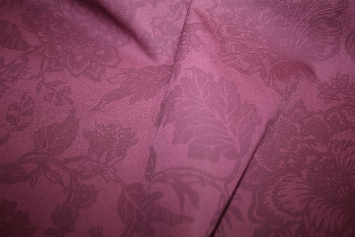 Liberty Tana Lawn™ i 100% bomuld med tone-i-tone print på en bordeaux bund. Det giver dig både et ensfarvet og mønstret stof på samme tid. Stoffet er oeko-tex certificeret, dvs. uden skadelig kemi.