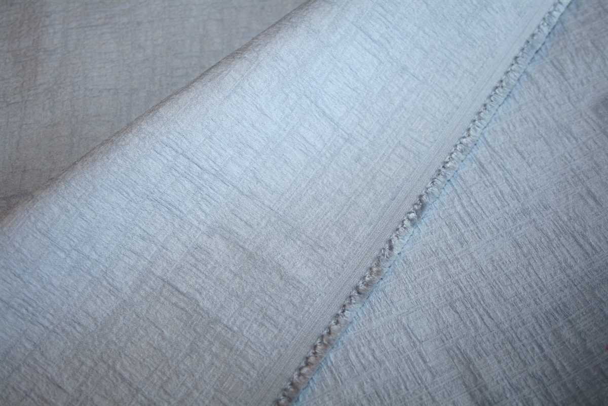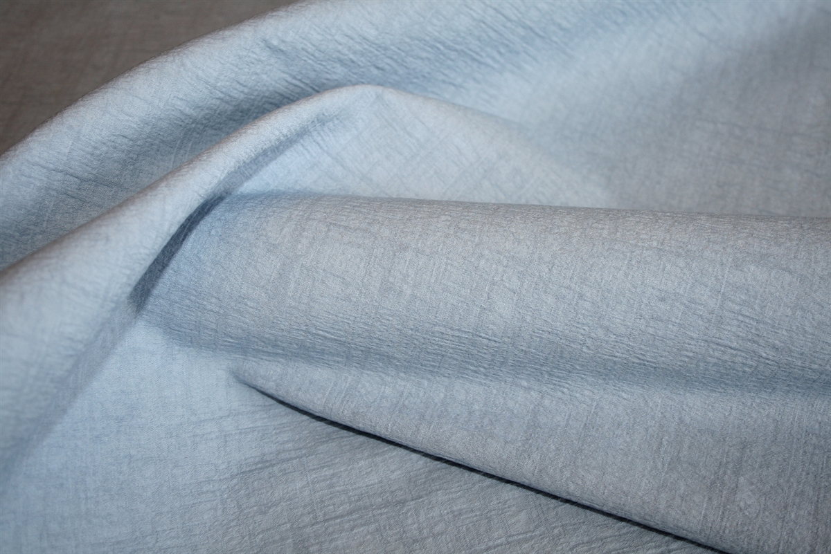 Støvet lyseblå jacquardvævet bomuldsblanding med et rustikt tekstureret udseende med stræk i længderetningen. Stoffet er produceret for Aspesi i Italien.