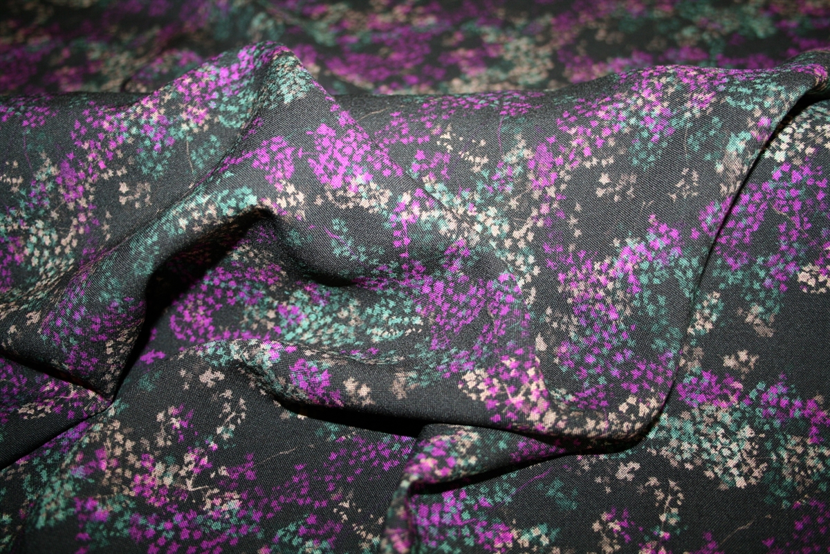 100% viskose med 'konfetti' print på en sort bund.