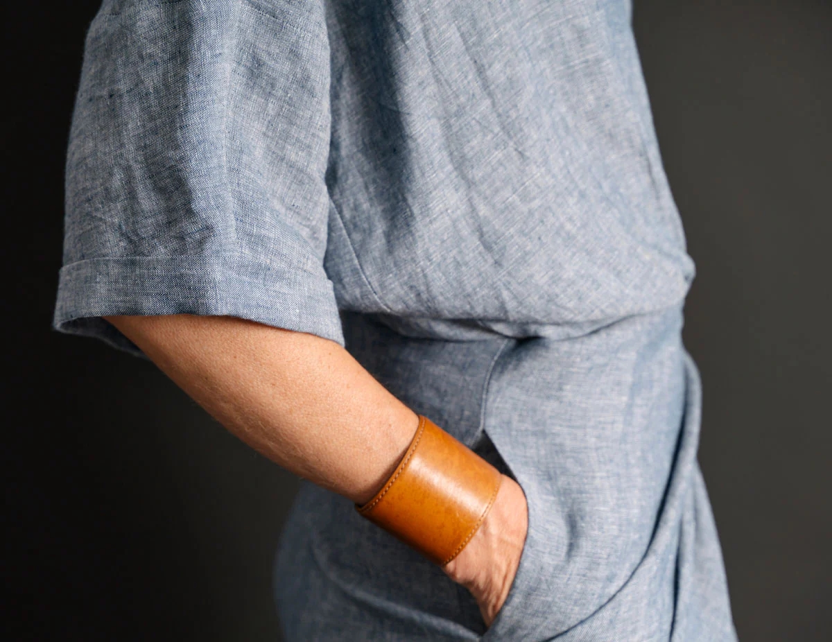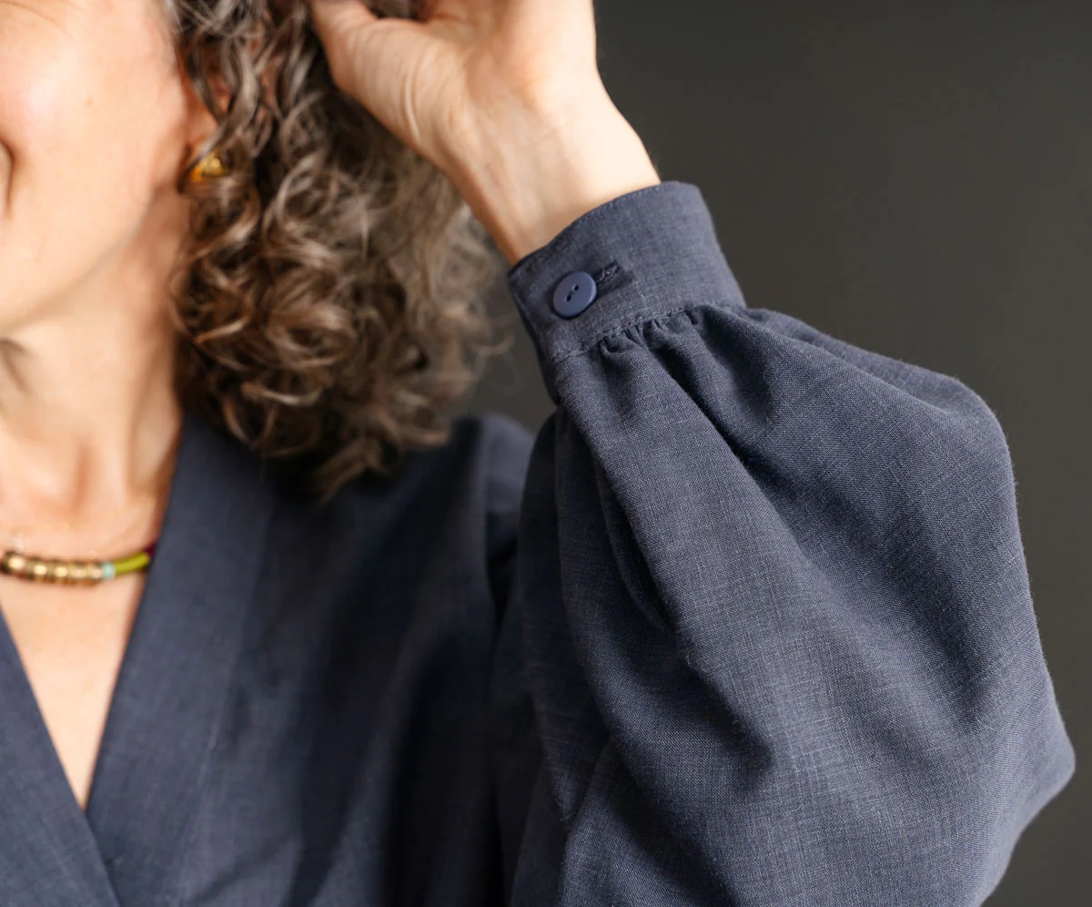 Copenhagen Wrap Dress er et moderne take på den klassiske slå-om-kjole og byder på smukke detaljer, der giver designet masser af karakter. Kjolen har en elegant sarong-inspireret nederdel, luftige ærmer og en let bluseformet overdel, som giver et feminint og sofistikeret udtryk. Du kan også vælge en kortærmet version med opsmøgede ærmer, hvis du ønsker et mere enkelt og sommerligt look.