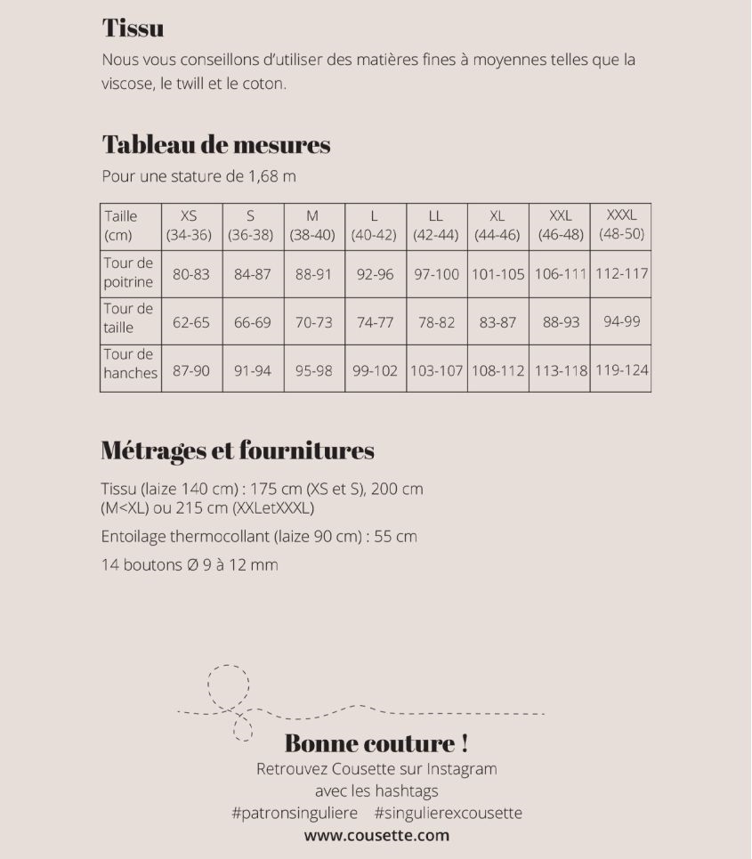 Bemærk at symønster og vejledninger er på fransk. Symønsteret er inkl. sømrum.