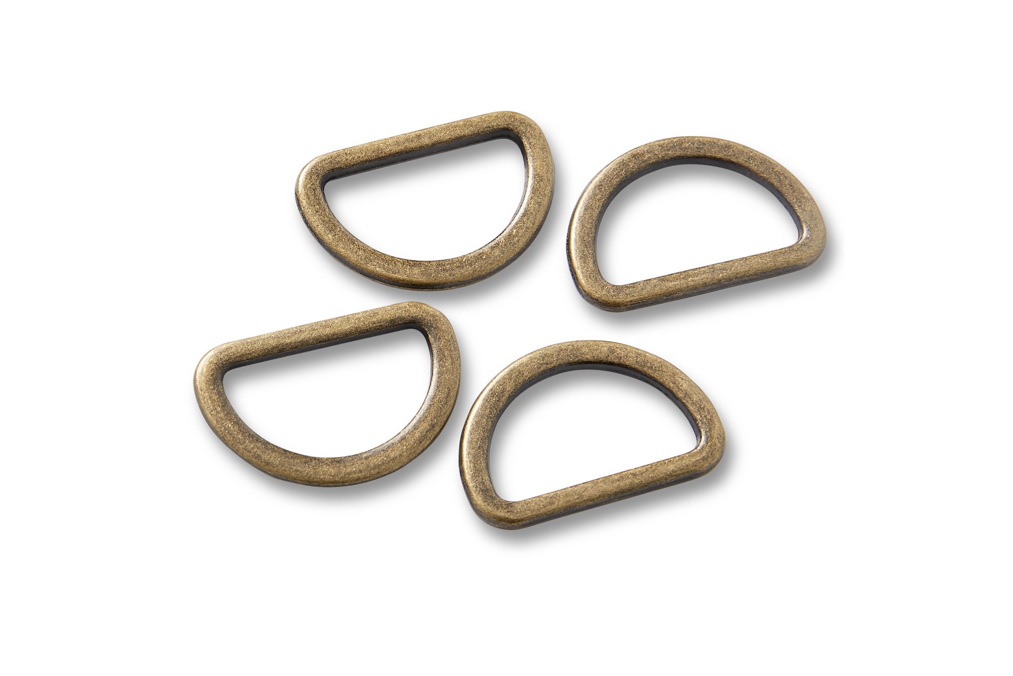 20 mm. lukket d-ring i antik messing. Brug d-ringen til justerbare stropper og bælter, på tøj og rygsække, til nøgleringe og meget andet.
