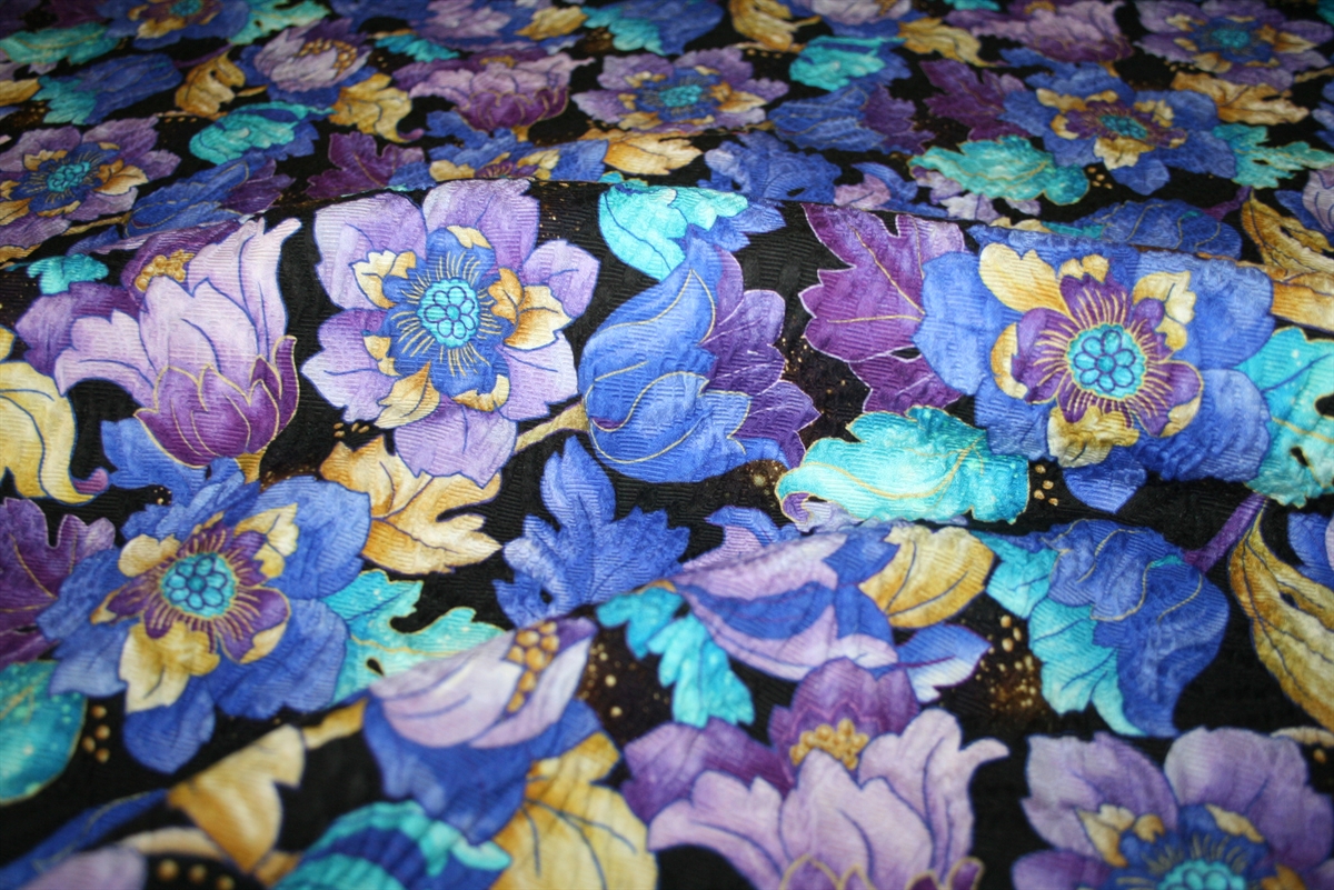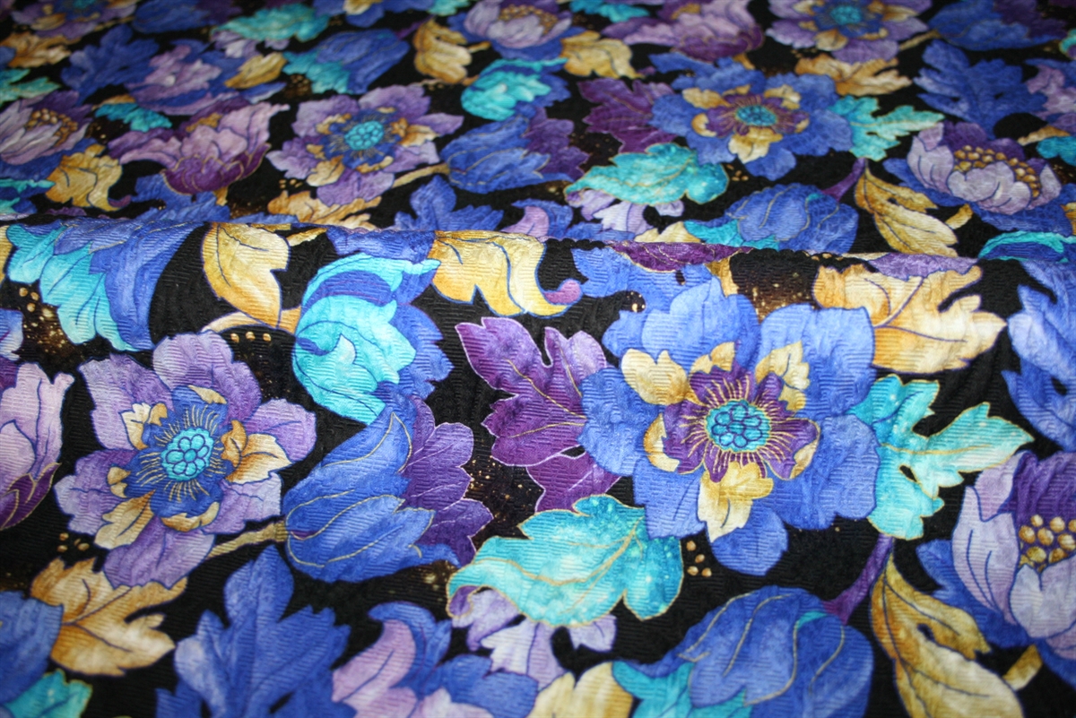 Bomuld med smukke blomster og en dimensionel tekstur, der fremkommer ved en særlig væveteknik. Kvaliteten er medium kraftig og giver sig en smule på tværs. Stoffet er produceret for Ferragamo.