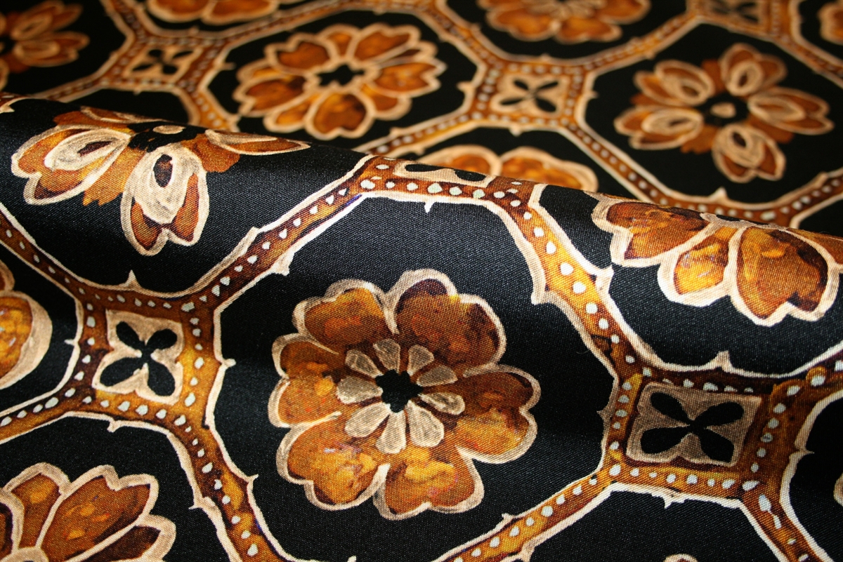 Deadstock uld -og silkeblanding med grafisk print i okker og sortDeadstock uld -og silkeblanding med grafisk print i okker og sortDeadstock uld -og silkeblanding med grafisk print i okker og sortDeadstock uld -og silkeblanding med grafisk print i okker og sortDeadstock uld -og silkeblanding med grafisk print i okker og sort