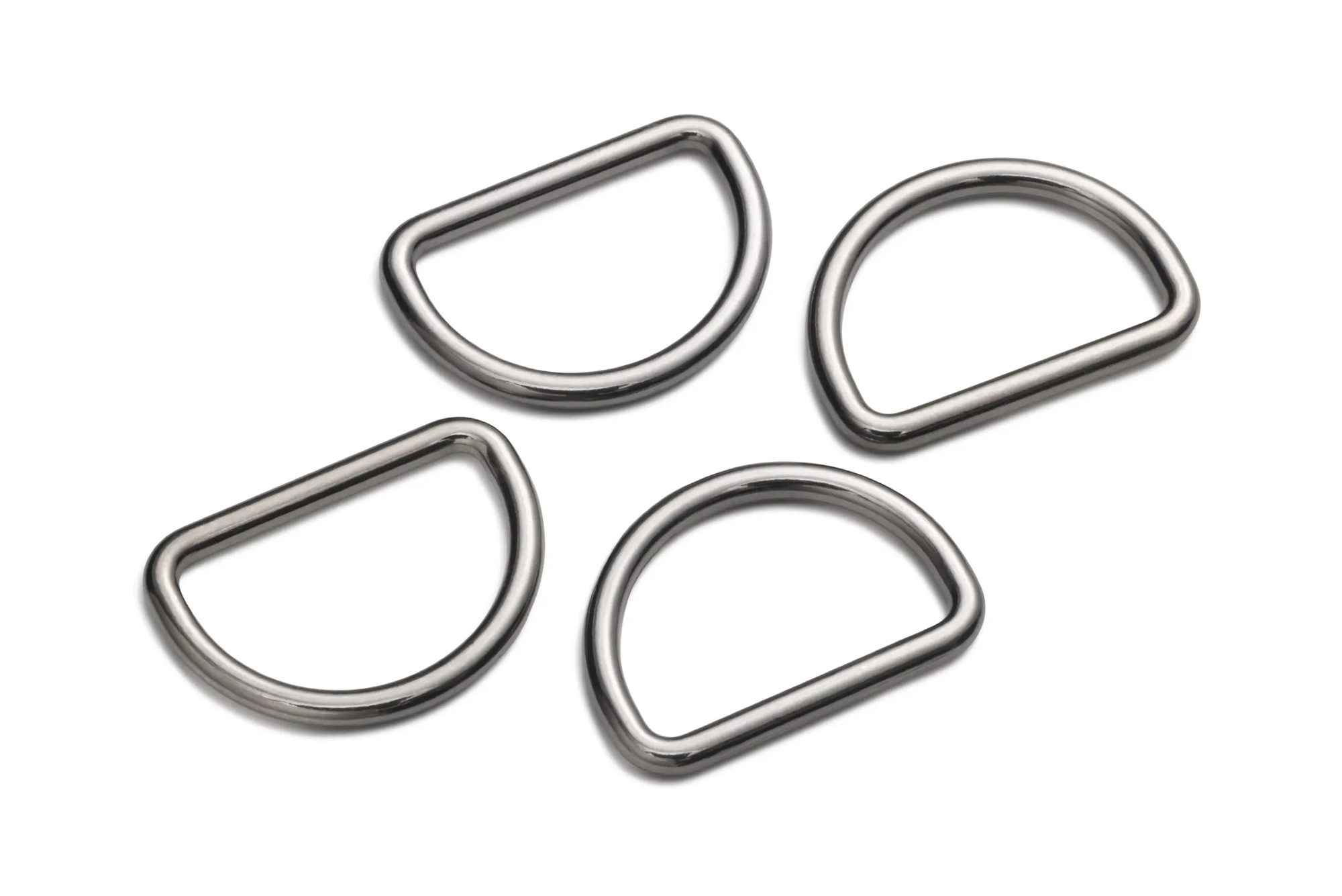 "D-rings or semicircular rings are shapely all-rounders, because they are perfect for bag fastenings or for adjustable straps, also for belts, clothing, rucksacks, key chains and many more uses. Even as a cool accessory, the D-rings are perfectly usable for bags, teen clothing or for handicrafts. The D-rings or semicircular rings are smooth polished hardened steel - for perfect mobility of belts and straps. The central joint of the straight edge is burr-free and fits tightly, so that nothing can slip in between."