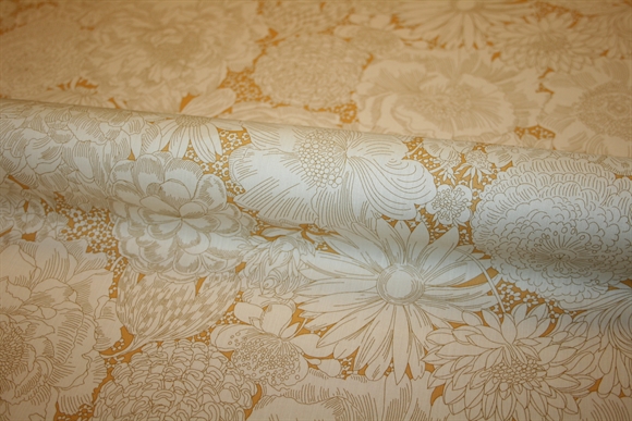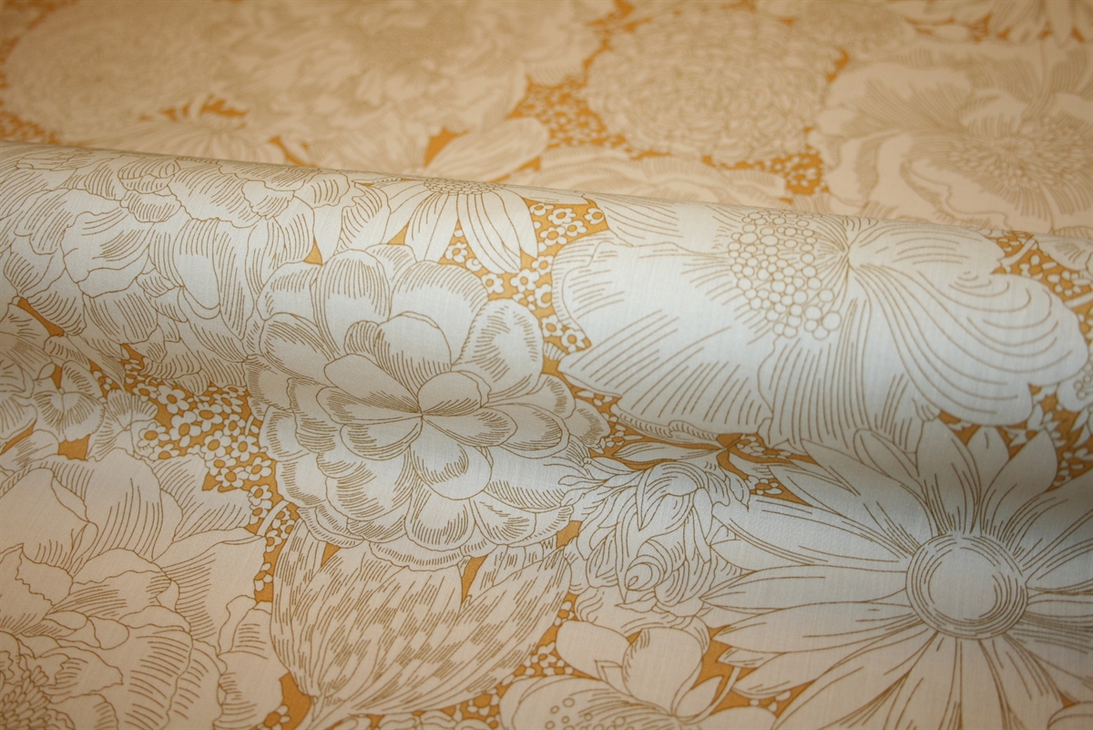 Liberty Tana Lawn™ i 100% bomuld med store blomster – margueritter, solsikker, roser, krysantemum, valmuer, tulipaner og georginer – i et rigt, sammenvævet blomsterunivers.