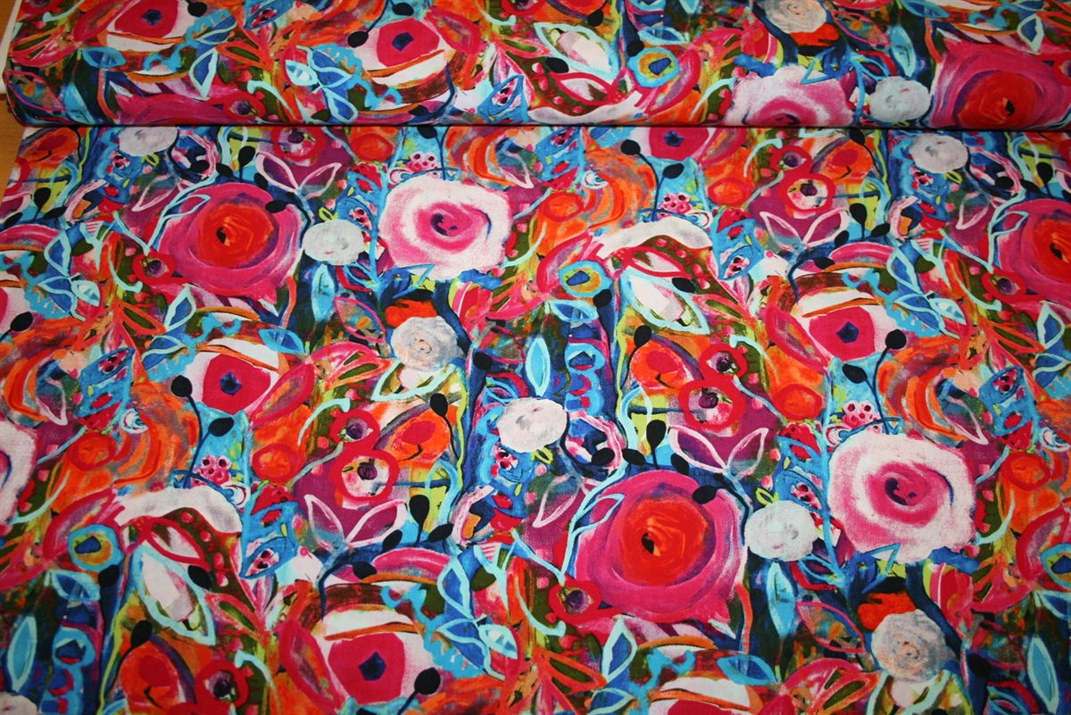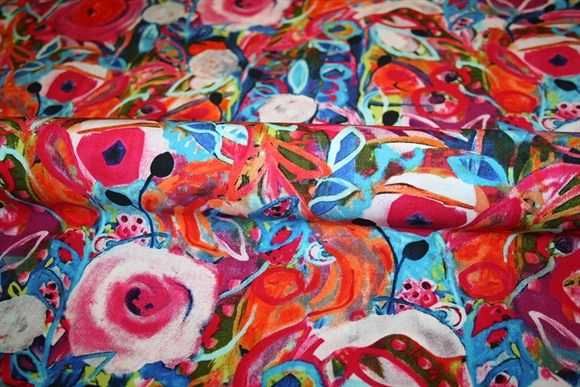Vævet viskose med farvestrålende blomster