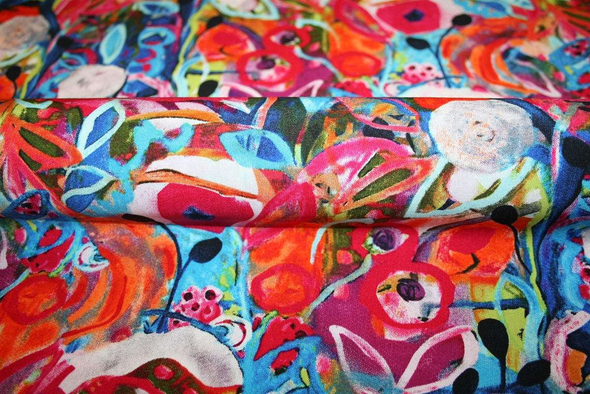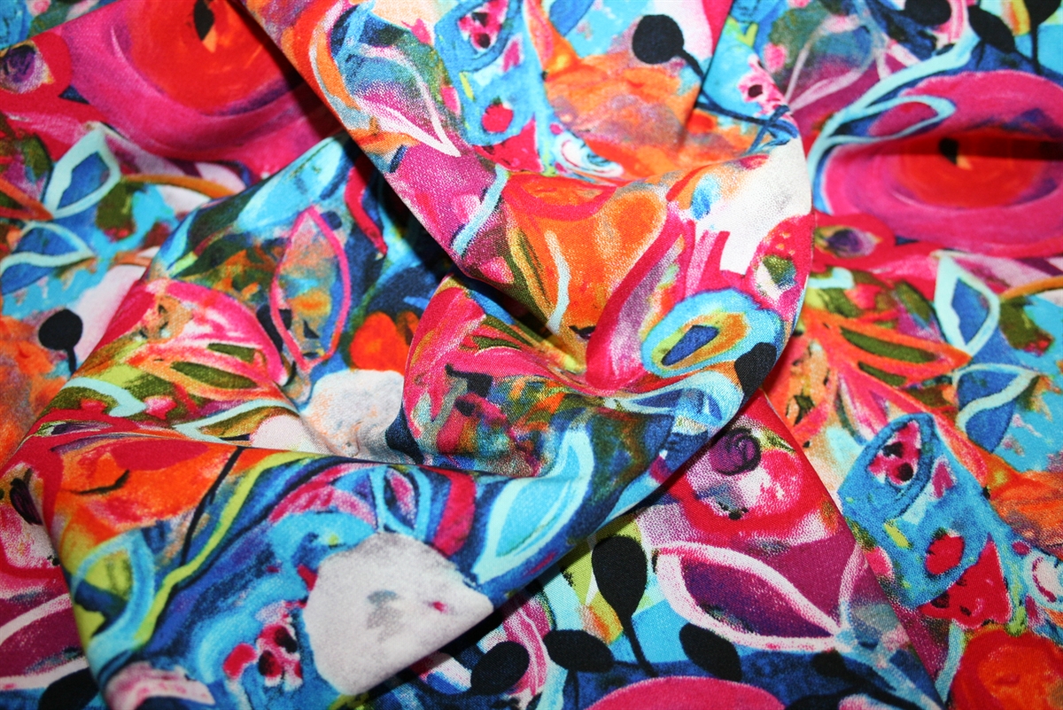 Vævet viskose med farvestrålende blomsterVævet viskose med farvestrålende blomsterVævet viskose med farvestrålende blomsterVævet viskose med farvestrålende blomsterVævet viskose med farvestrålende blomster