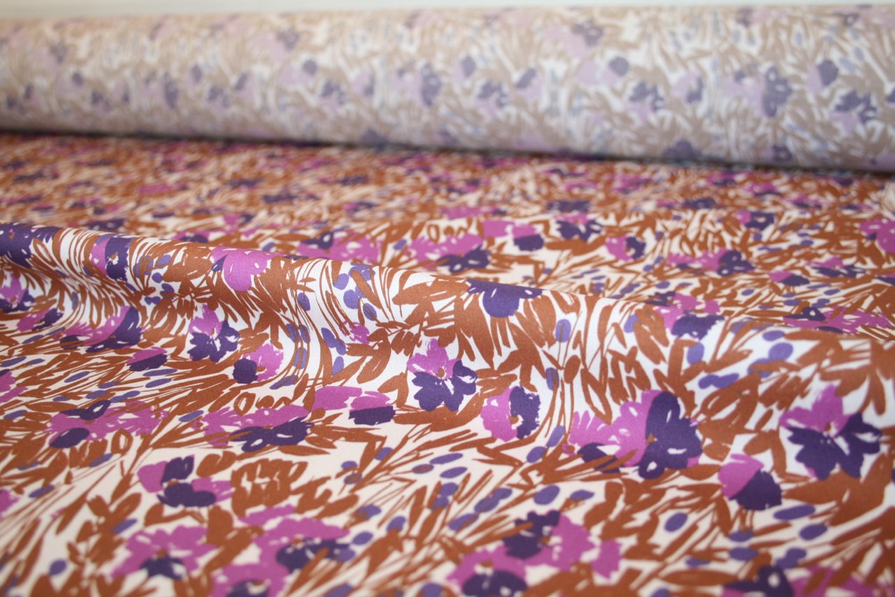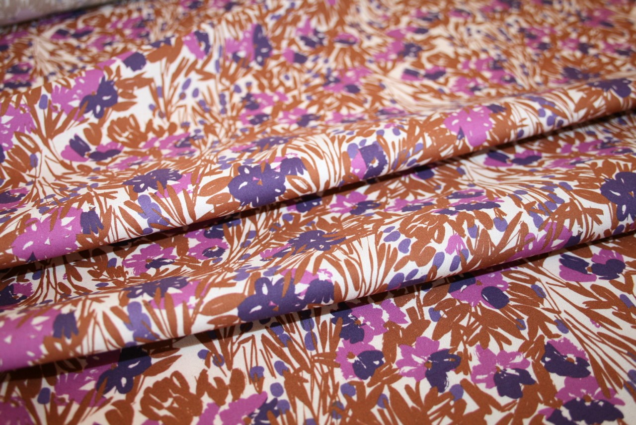 Vævet bomuld med et skønt print. Lettere kvalitet der giver sig en smule på tværs og er velegnet til fx skjorte, kjole eller quiltet jakke.