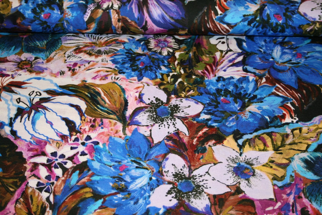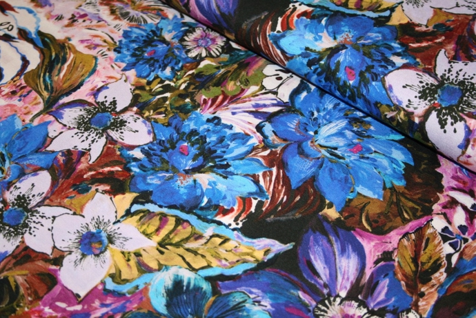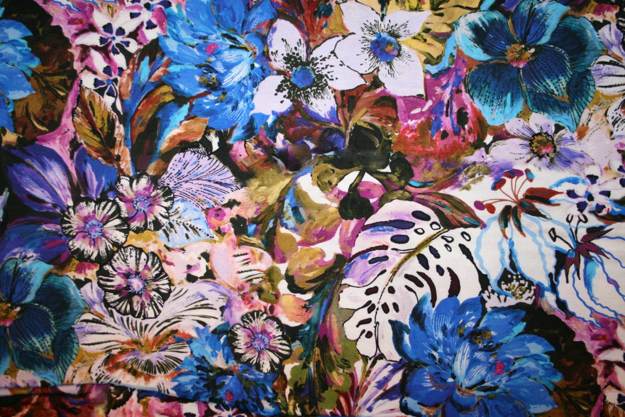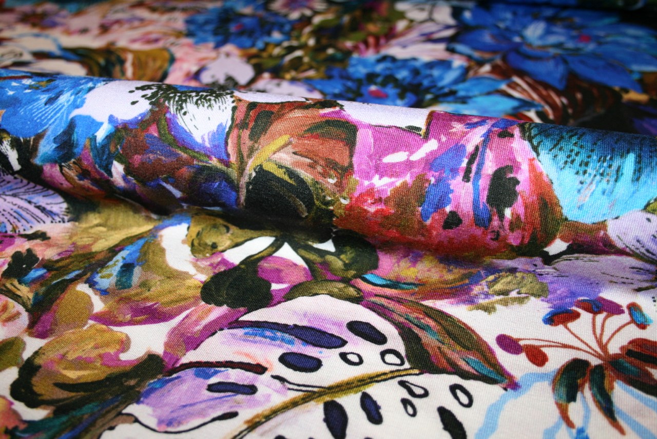 Lækker oeko-tex certificeret viscose jersey med farvestrålende blomster.