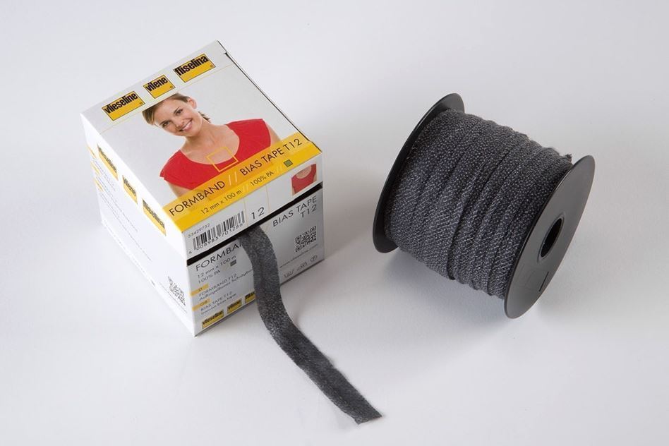 Freudenberg vlieseline 12 mm. formbånd med kædestikning til stabilisering af sømme (fx halsudskæring, skulder og ærmegab).