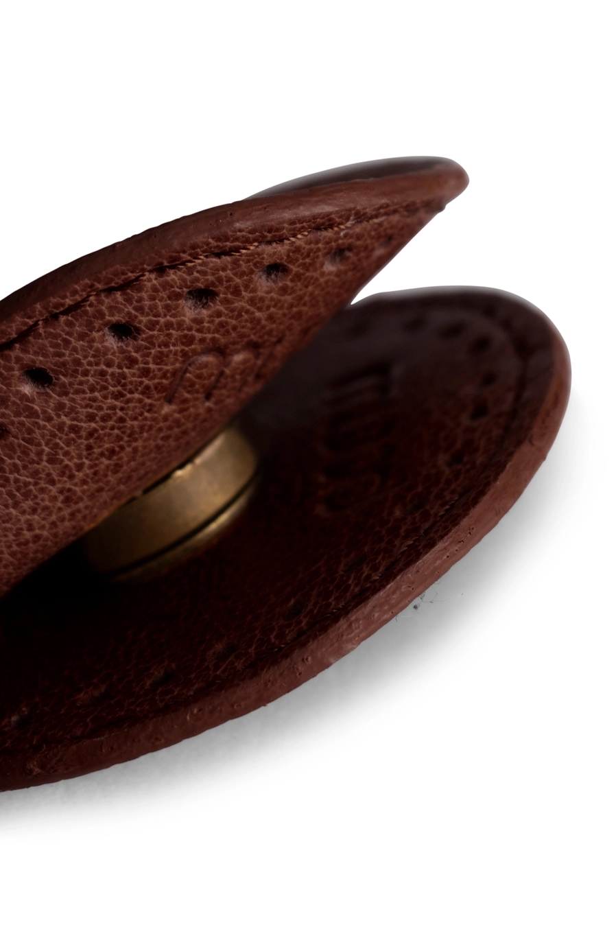 Magnetisk knap i brunt læder.