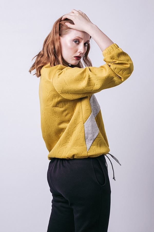 2-i-1: Loose fit sporty sweater og feminin jersey kjole med geometriske skæringer og høj hals.