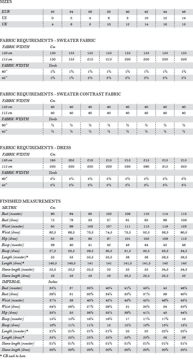 • Kjole: Vælg en fastere strikket metervare med en god portion stræk (se forslag til materialevalg herunder)