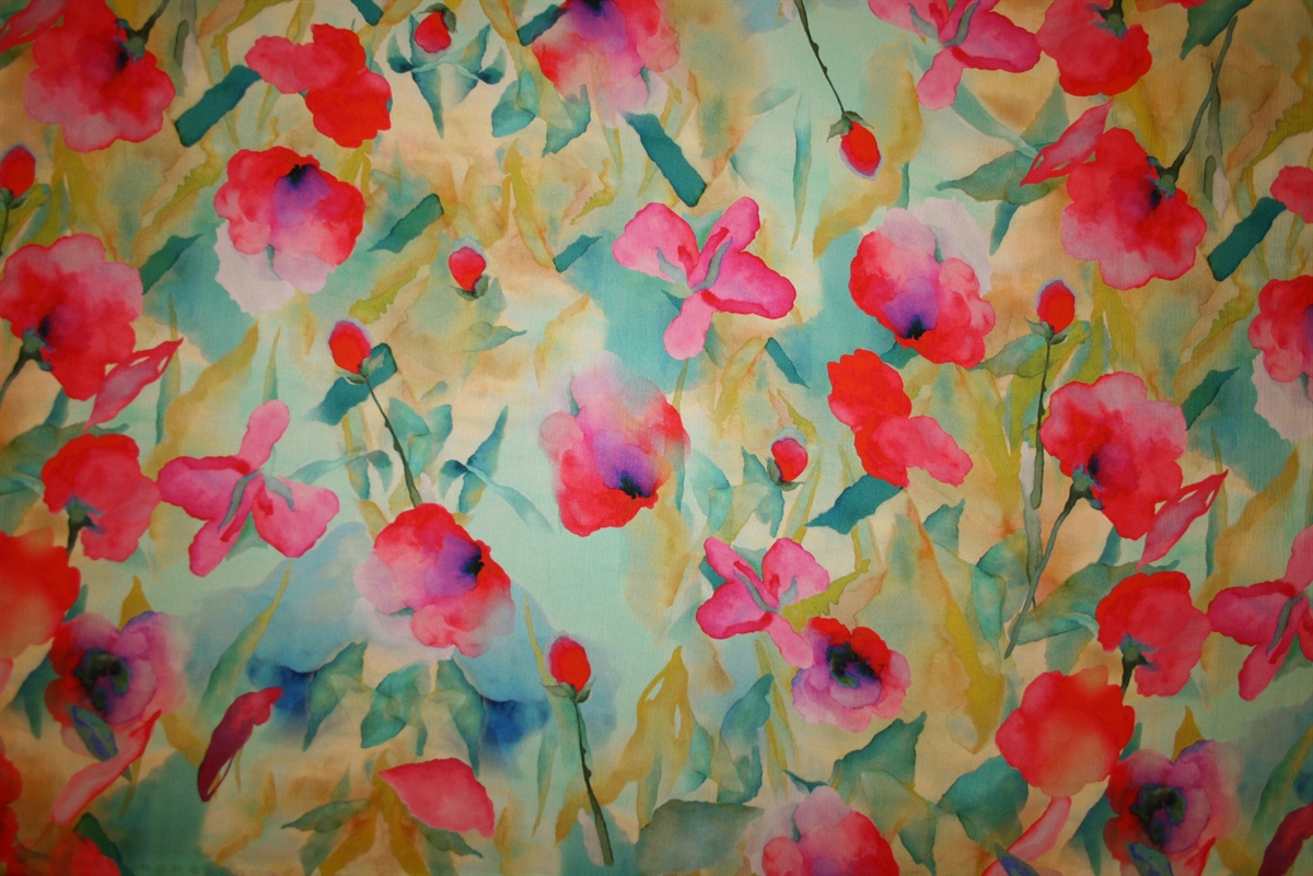 Let silke med akvarelblomstret print. Stoffet er produceret for et internationelt modehus.