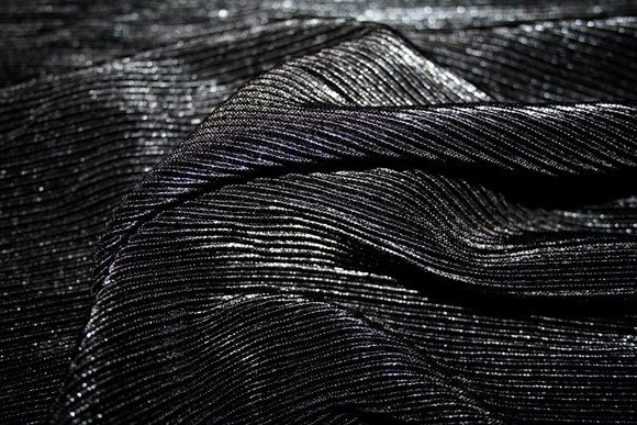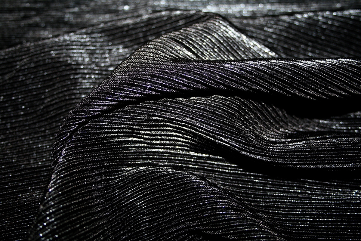 Gå festsæsonen i møde med et funklende outfit i denne skinnende sorte plissé. Plisseringerne ligger vandret, men kan selvfølgelig vendes, hvis de ønskes på langs. Stoffet giver sig på begge leder.