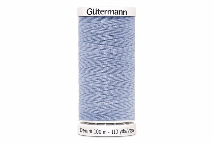 100 m. lyseblå denim sytråd (Gütermann).