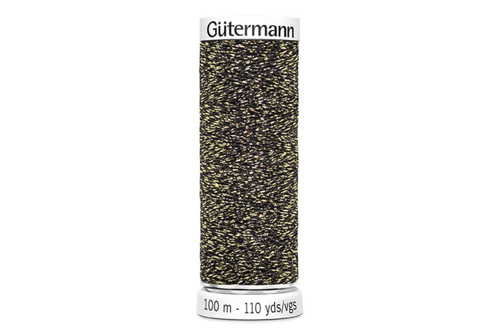 100 m. Gütermann sytråd med metaleffekt. Tråden kan bruges til dekorative sømme i lette-medium vægt metervarer.