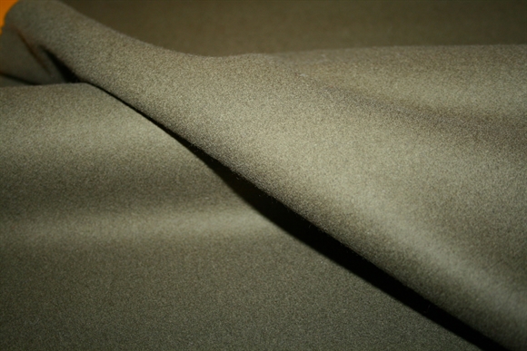 Mosgrøn uld i en lækker italiensk kvalitet. Uldstoffet kan fx blive til en skøn varm frakke i et struktureret snit, idet stoffet er fast og stabilt.