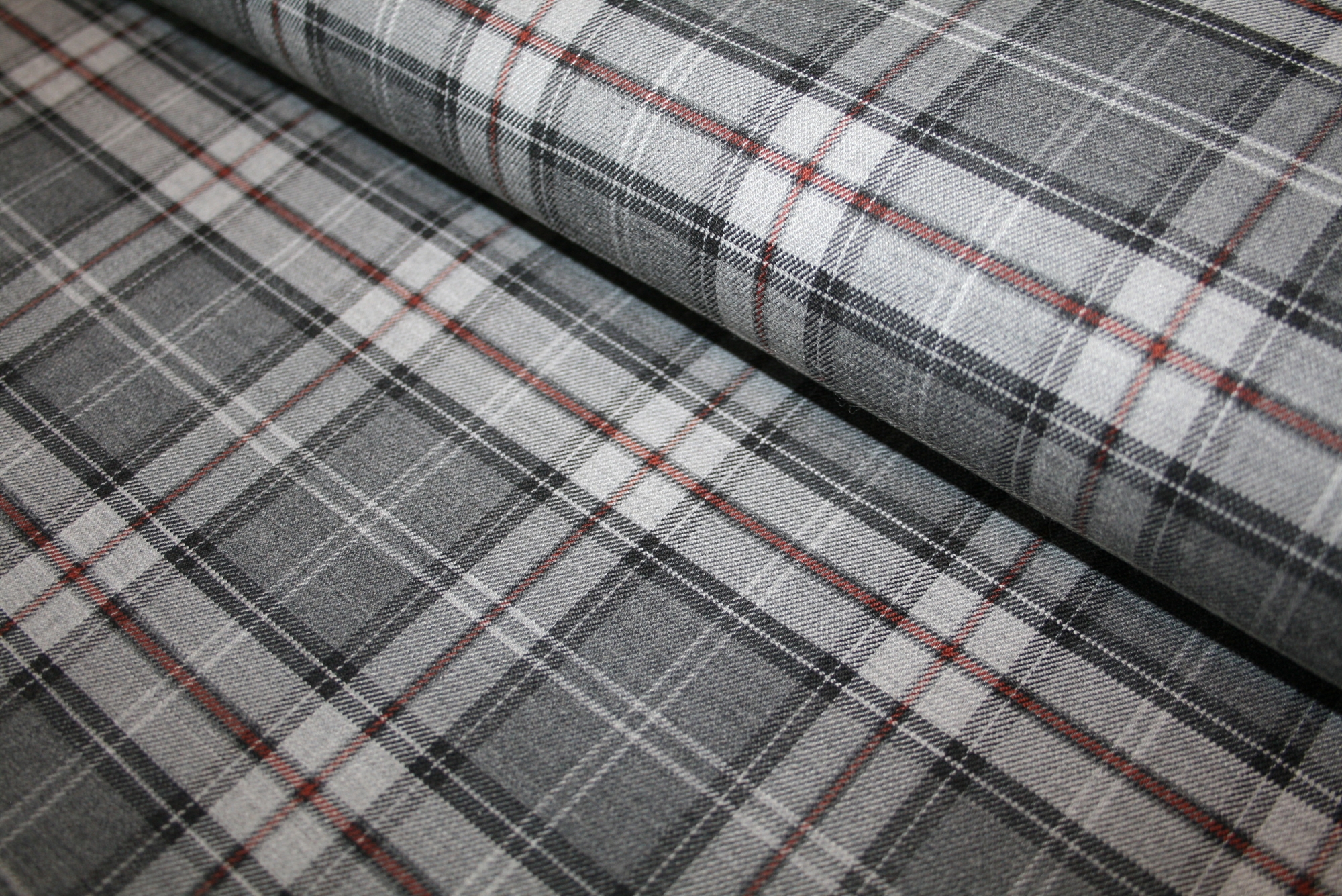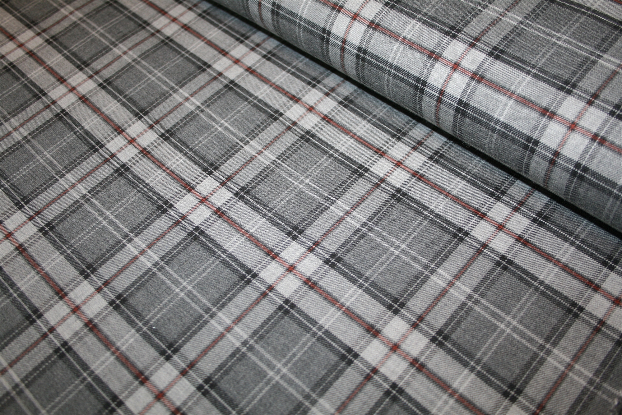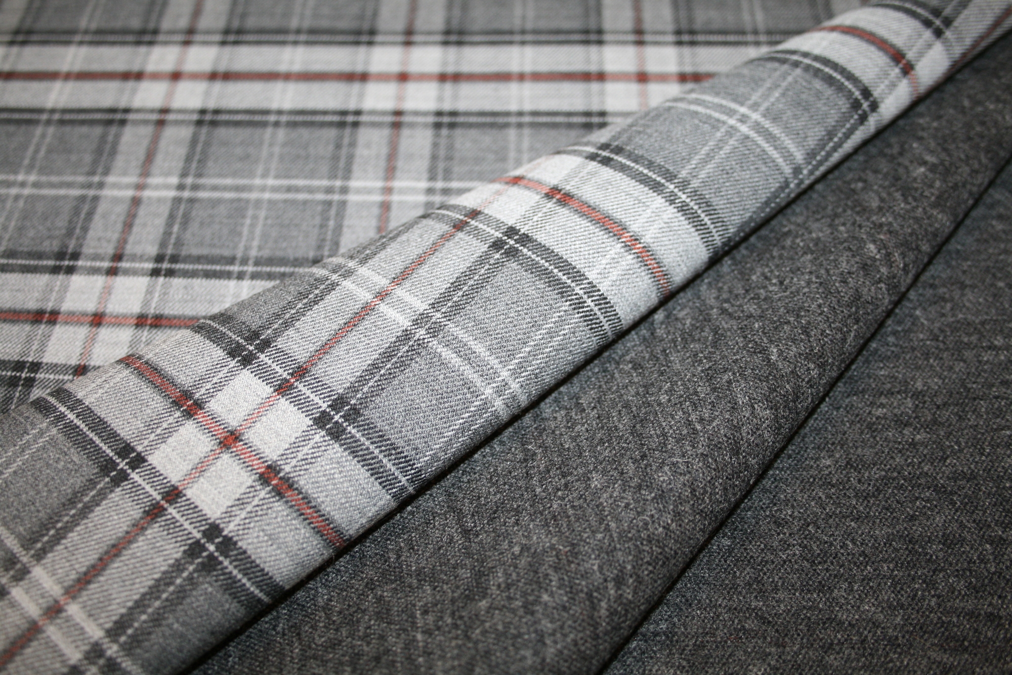 Vendbar uldblanding i en tæt og kraftig diagonalvævning tilsat elastan. Ulden er ternet på den ene side og gråmeleret på den anden.