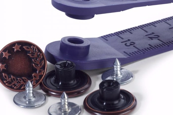Med dette sæt og medfølgende værktøj kan du nemt sætte knapper i dine bukser eller cowboy jakke.