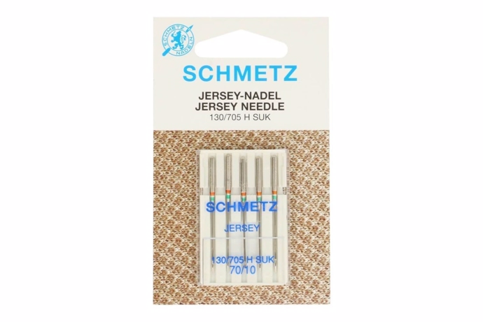 Schmetz symaskinenåle til jersey har en afrundet kuglespids, der er særligt udviklet til strikkede og lette strækstoffer og passer til almindelige husholdningssymaskiner. Den afrundede spids sikrer, at stoffets fibre ikke bliver skåret over, når nålen går igennem materialet.