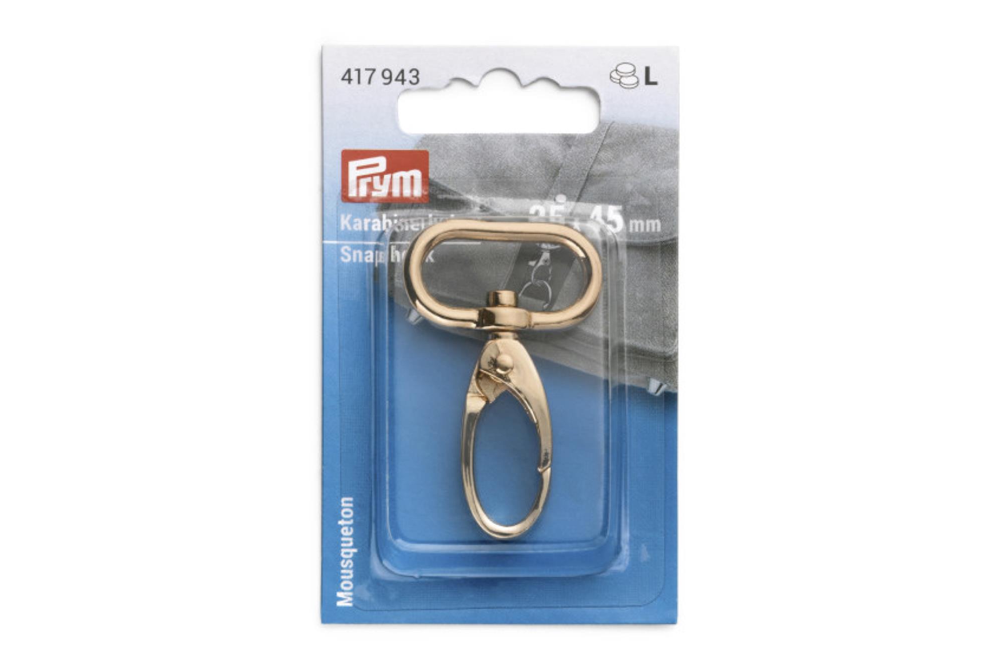 "The Prym snap hook boasts an attractive design and is especially versatile. So, it is suitable for the easy attachment of bag handles or serves as a fastener for self-made bags, rucksacks, bags, sports bags, baby change bags, and much more. Through its rounded shape, it is a real looker and ideal for decorative purposes such as stylish key chains. The snap hook is made of high quality stainless steel and features a reliable, frictionless closing mechanism. Its burr free surface is brushed - so it completes the snap hook as a practical piece of decoration for every bag design."