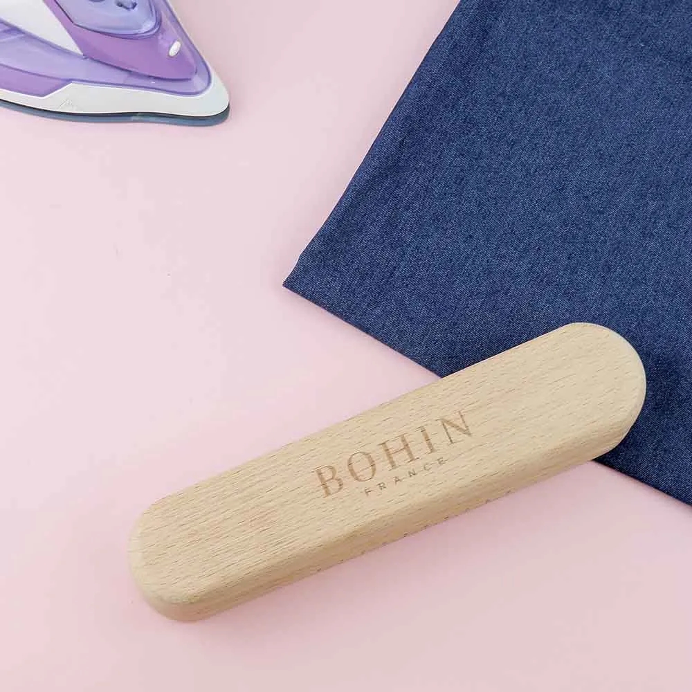 Denne træklapper fra Bohin er fremstillet i massivt træ og designet til at give skarpe, flade sømme uden brug af ekstra varme. Efter presning med strygejern lægges klapperen direkte på den varme søm, hvor den absorberer dampen og “låser” sømmen på plads. Resultatet er en professionel finish med ekstra skarphed – særligt på uld, bomuld og kraftigere metervarer.