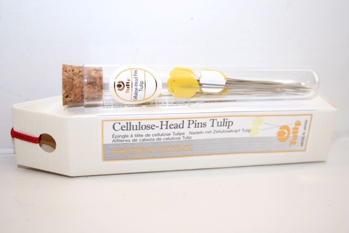 Japanske kvalitetsknappenåle med et fladt tulipanhoved (lavet af cellulose). En lang og skarp knappenål til materialer såsom bomuld og uld. Knappenålene kommer i en skøn plastikampul med korkprop. Ampullen indeholder 15 knappenåle.