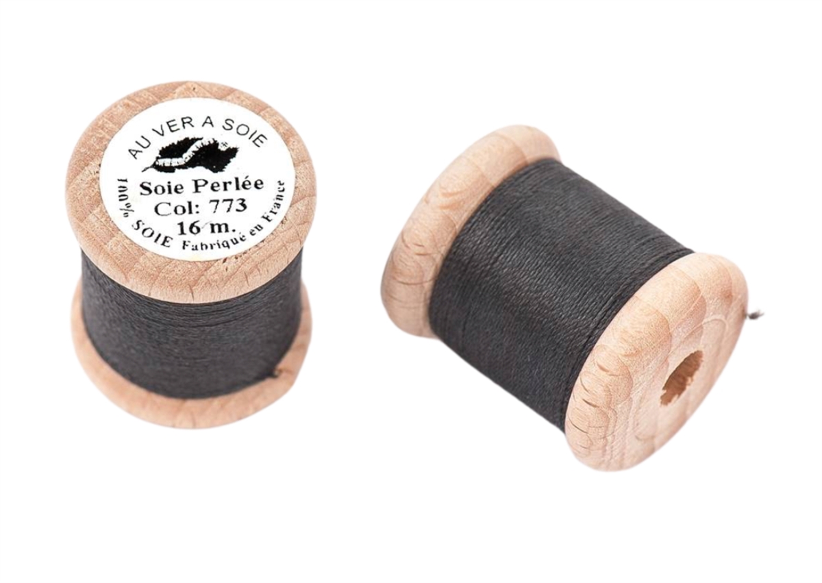 3 trådet knaphulssilke spundet af råsilke af højeste kvalitet på fin cone af træ.