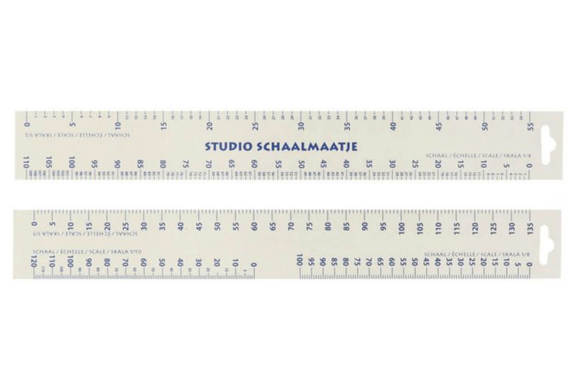 Den lille uundværlige lineal til dig, der vil teste et papirmønster i fx kvarte mål. Linealen har hele 5 forskellige målskalaer; 1:4, 1:2, 1:5, 1:8 og 1:10. Linealen er 30 cm. lang.