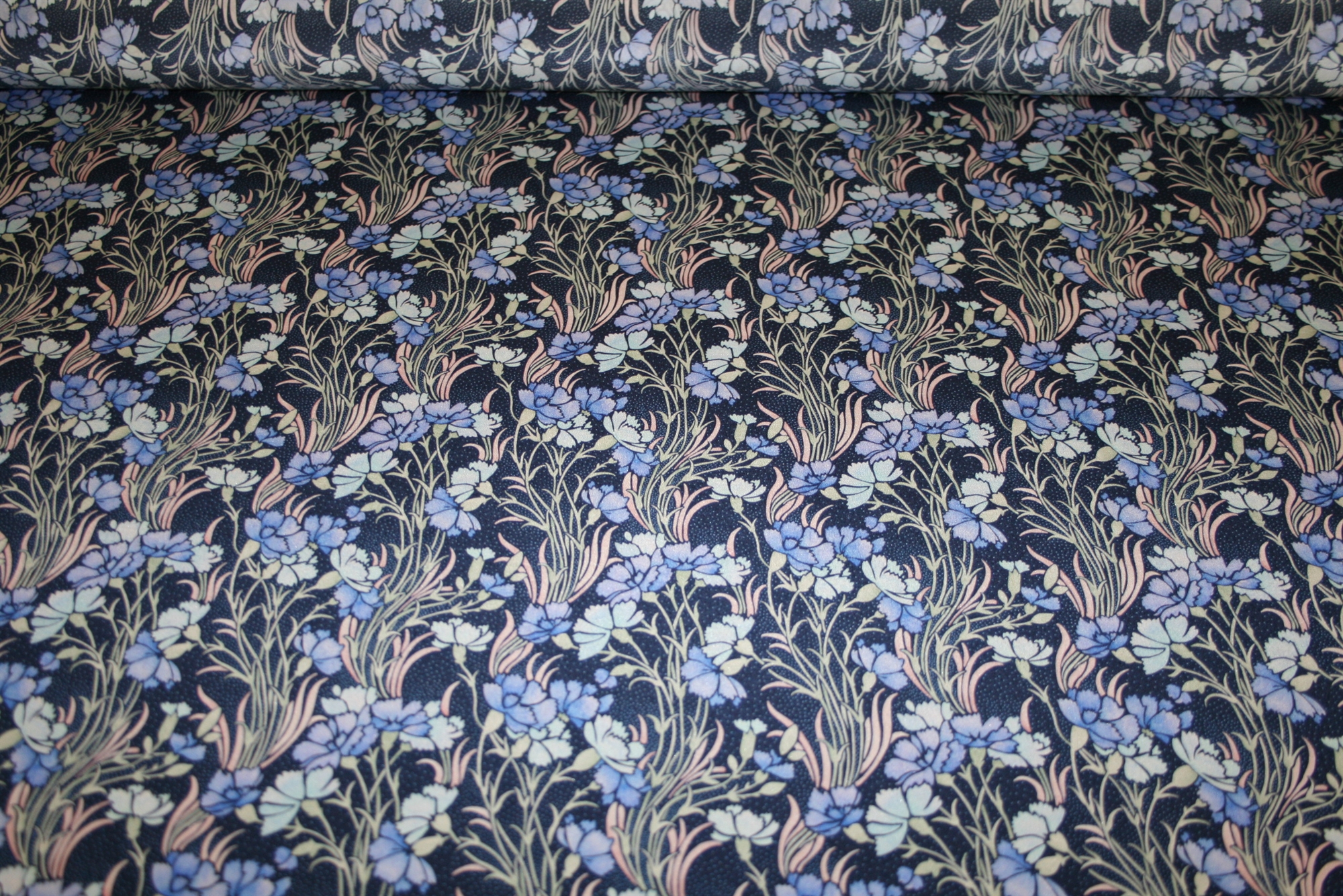 "A fresh and breezy interpretation of the Art Nouveau style, Aurelia is based on a hand-painted artwork discovered in the Liberty archive. The stencilled carnation flowers take centre stage, and the use of watercolour evokes a sense of romance and softness."
