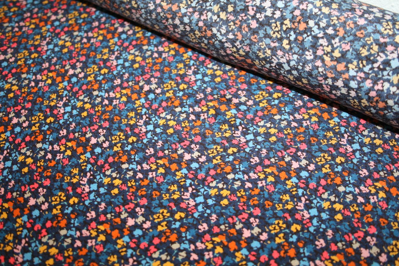 Liberty silke Crepe de Chine med farvestrålende petit print.